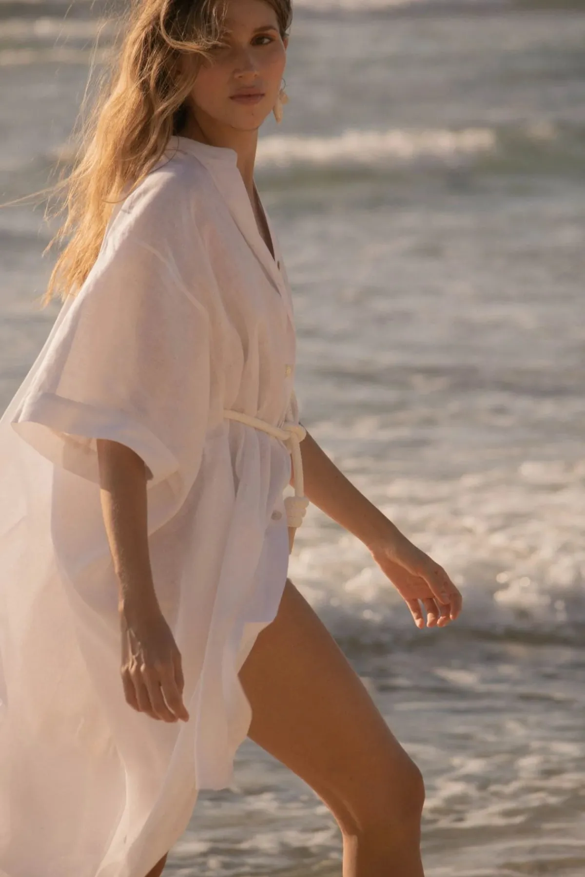 Our Beatriz Camacho Capa Dress is a cape style with a rope belt that accentuates the waist with stunning pearl buttons. This timeless dress can be worn for any occasion. Handcrafted by artisans in Colombia.