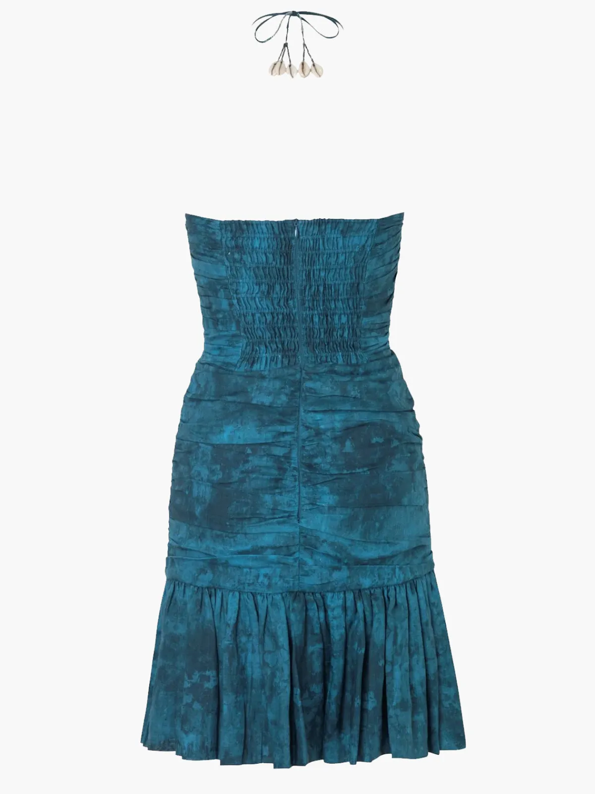 Our Beatriz Camacho Popa Dress boasts a halter silhouette in a short length with crossed straps that drapesto the body. Dress features a zipper in the back and the halter can be tied to desired tightness. Handcrafted by artisans in Colombia.