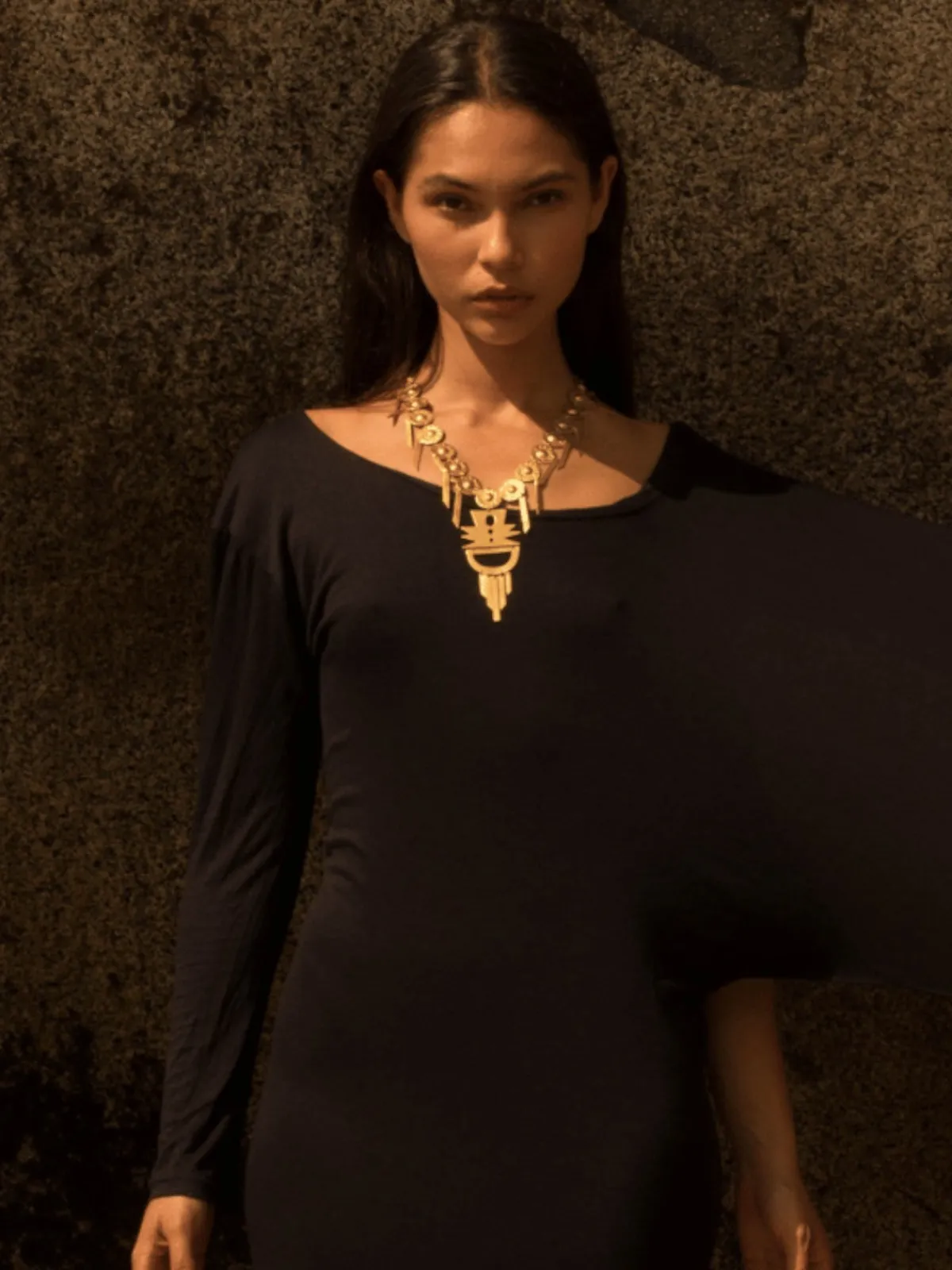 Our Cano Palomino Necklace is an exquisite statement piece that effortlessly combines traditional craftsmanship with contemporary elegance. With a length of 50 cm and a width of 11 cm, this necklace is plated in lustrous 24K gold, offering a brilliant and opulent finish. The design is defined by a series of intricate circular motifs, each adorned with radiant patterns and linked by slender, elongated connectors, culminating in a bold central pendant that commands attention. Handcrafted by artisans in Colombia.