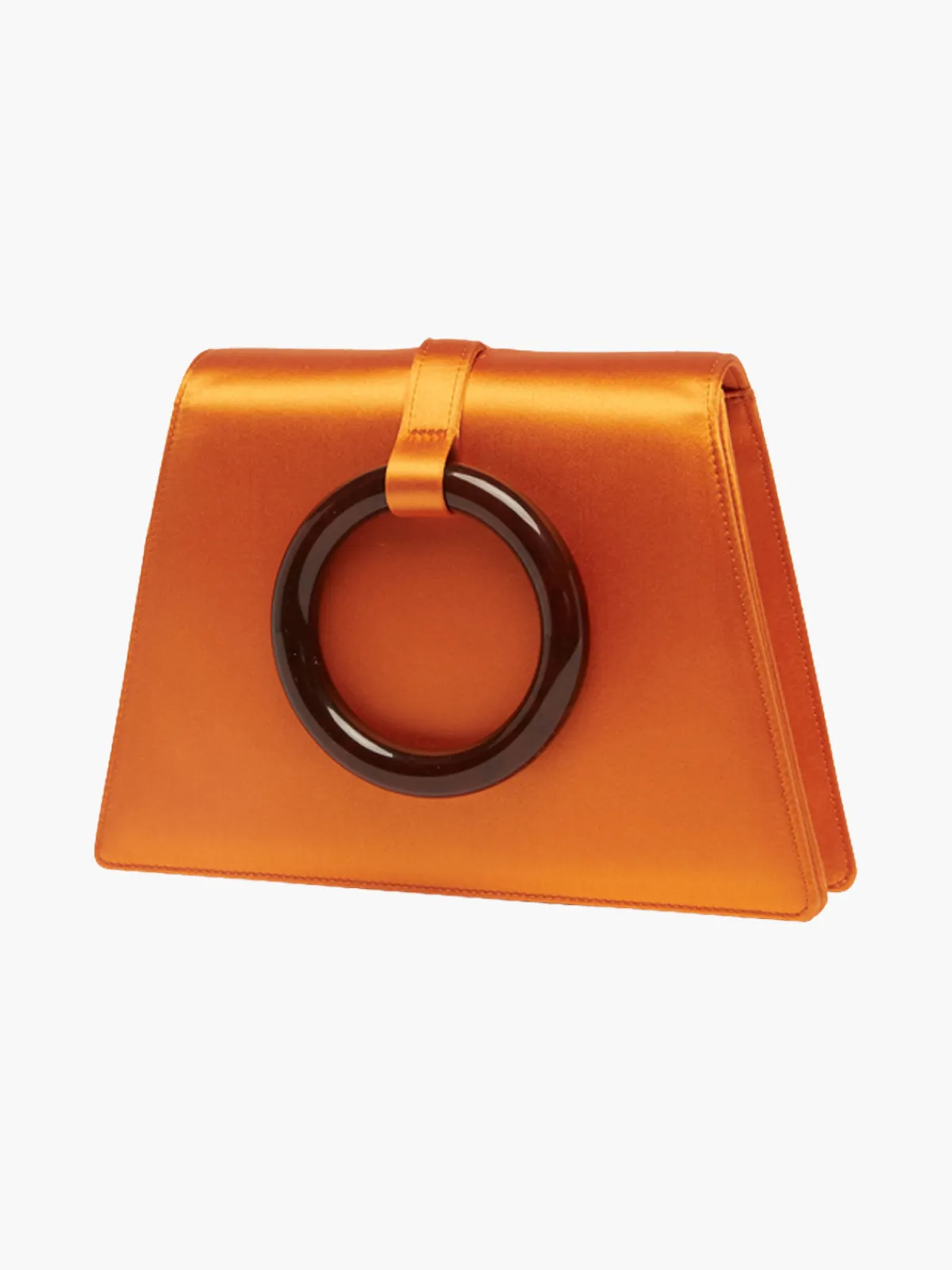 Our Carolina Santo Domingo Bangle Bag in Orange features a structured silhouette in a petite shape with a resin bangle on the front. Slide the bangle over the wrist or carry it as a clutch. Handcrafted by artisans in Italy.