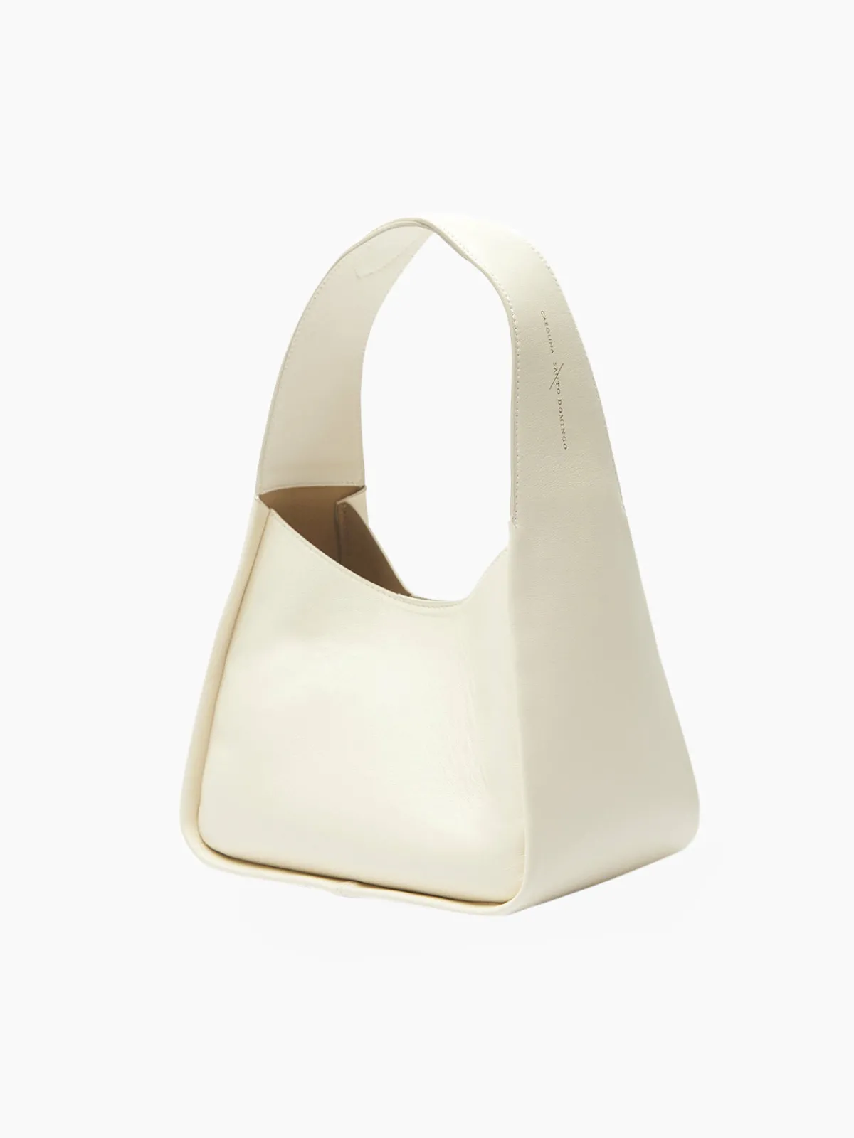 Our Carolina Santo Domingo Salma Handbag in Cream features a slouchy square shape with a magnetic closure. It’s detailed with a single shoulder strap for carrying over the shoulder or toting by hand. Handcrafted by artisans in Italy.