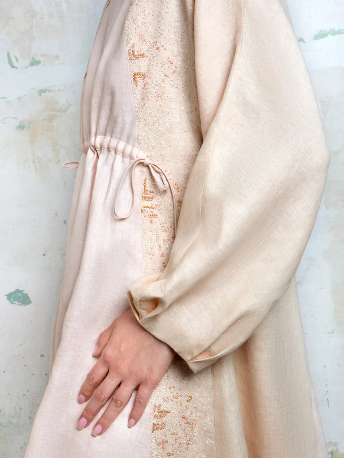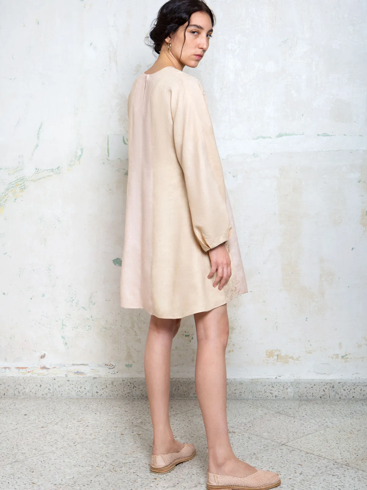 Our Collectiva Concepcion Damiana Mini Dress inCollectiva Pink features a relaxed silhouette with loose long sleeves, a round neckline, and a drawstring that gathers the waist. It is embellished with cross stitch embroidery and finished with a button closure in back. Handcrafted by artisans from Zinacantán in Chiapas, Mexico.