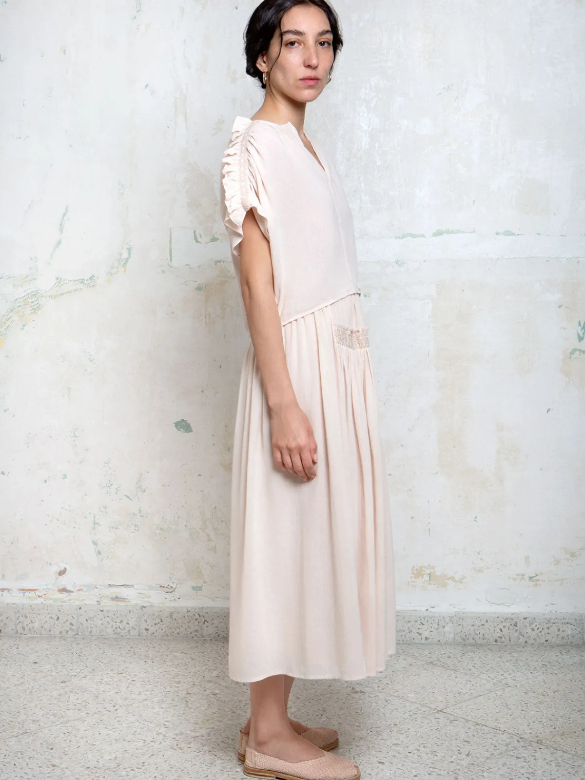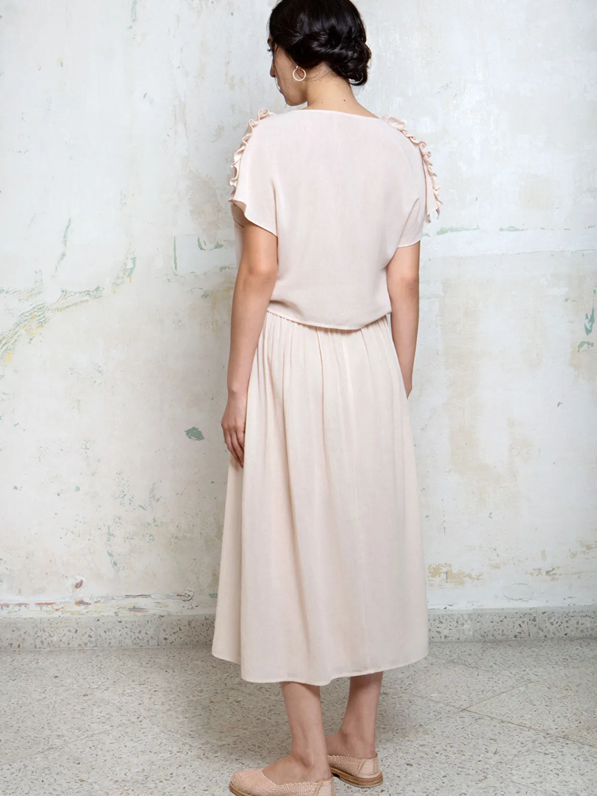 Our Collectiva Concepcion Isabel Skirt in Collectiva Pink features an A-line silhouette in a midi length with a back zipper and button closure.The intricategathering and embroidered detail is specificto the Chenalhó community in Chiapas. Handcrafted by artisans in Mexico