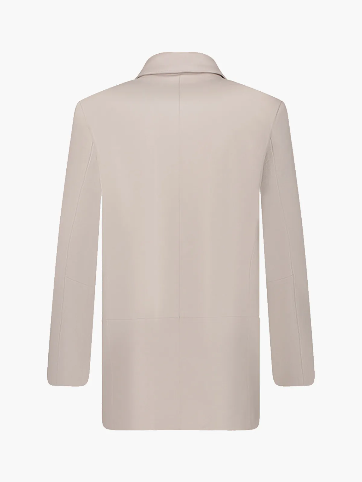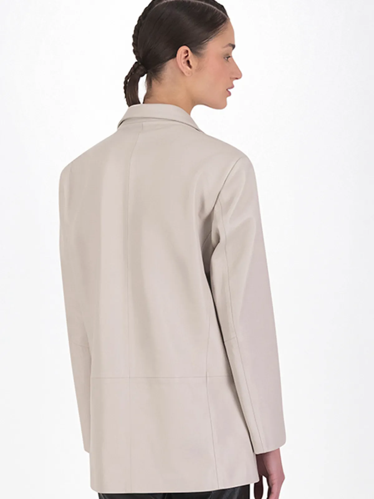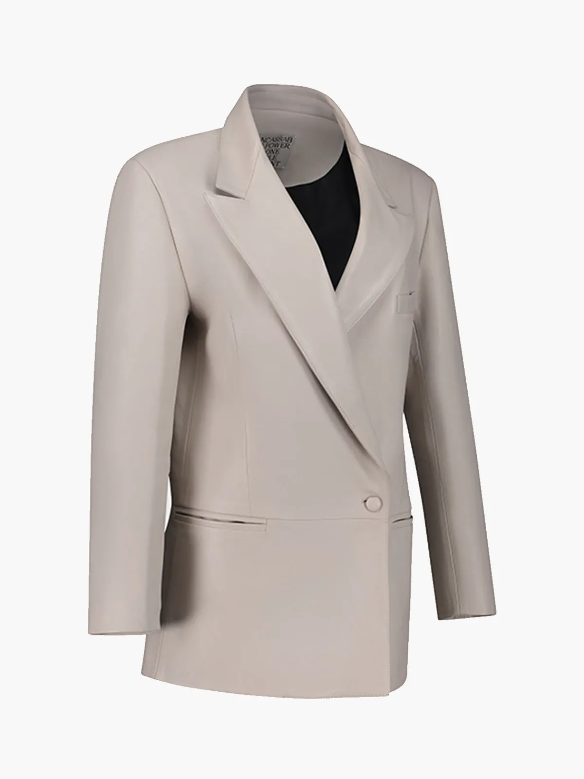 Our DanCassab Marlene Blazer in Blue Moon Grey features a professional and sleek cross-over design. Detailed with2 frton pockets. Handcrafted by artisans in Mexico.