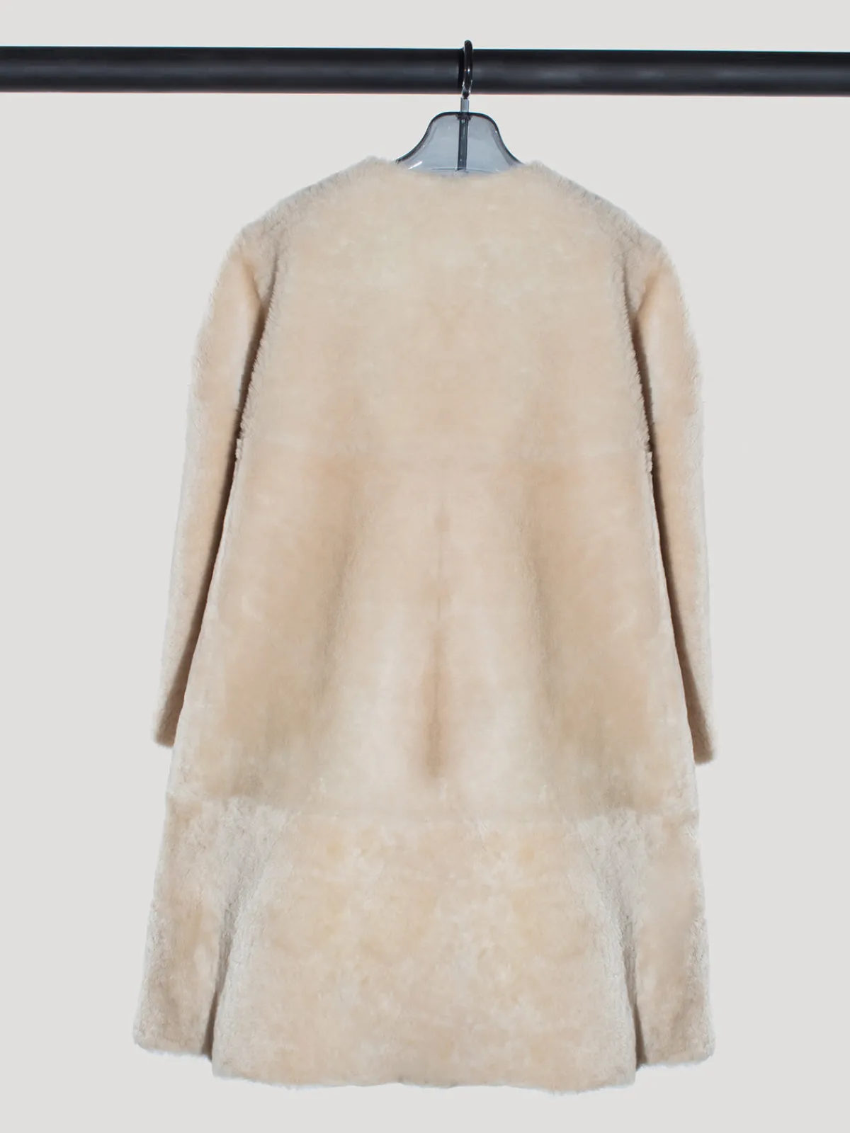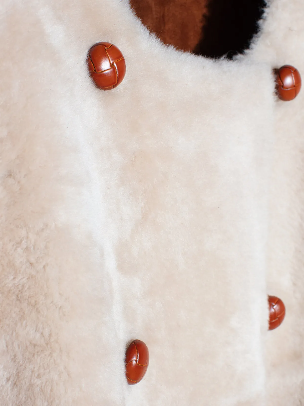 Our DanCassab Daisy Coat features a shearling silhouette in a neutral two-tone design. Detailed with long sleeves and two functional front pockets. Handcrafted by master artisans in Mexico.