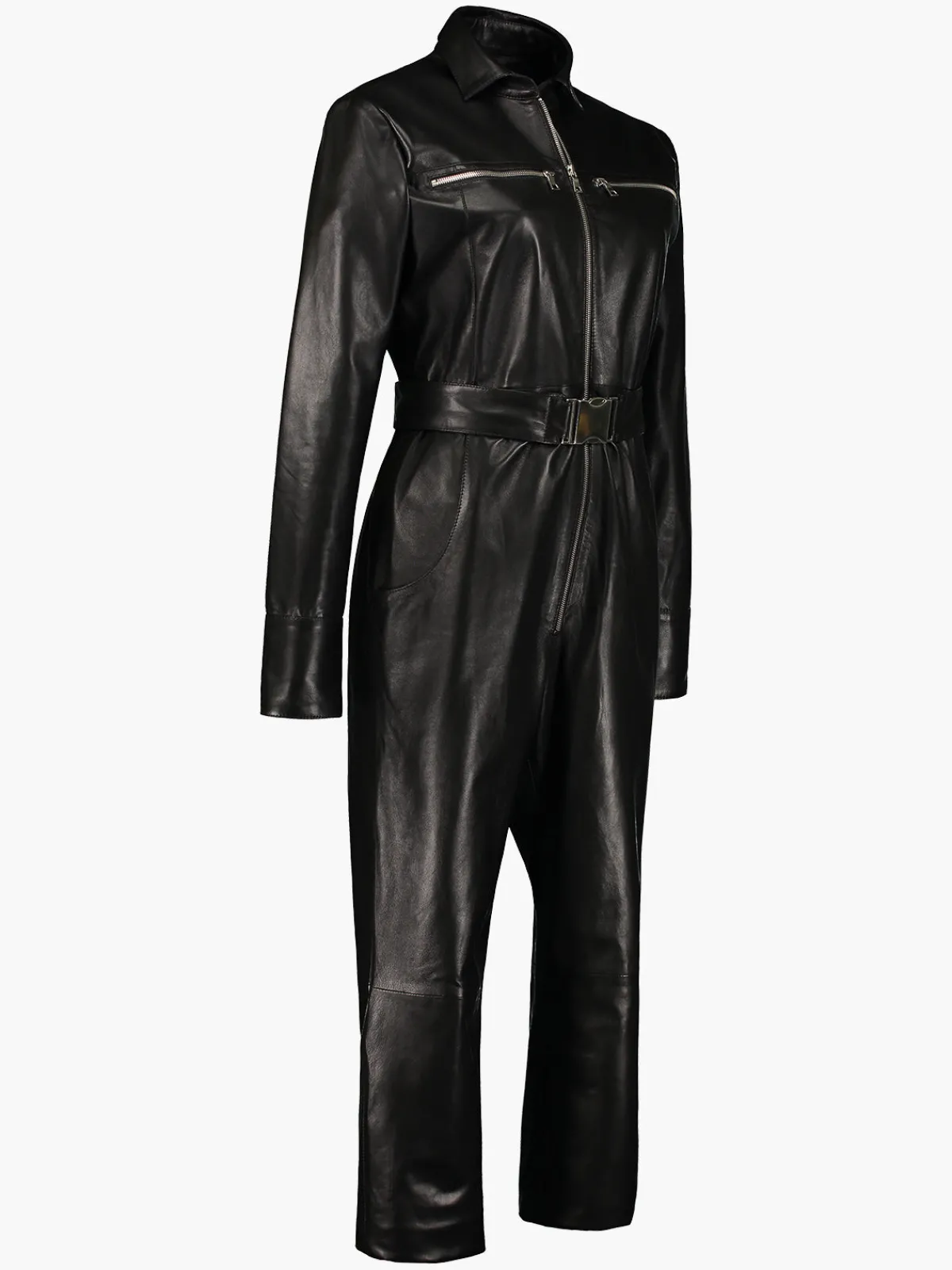 Our DanCassab Dolores Jumpsuit boasts a chic one-piece silhouette with long sleeves, a zip front bodice, a fixed belt at the waist, and two horizontal zipper pockets on the chest. Handcrafted by artisans in Mexico.