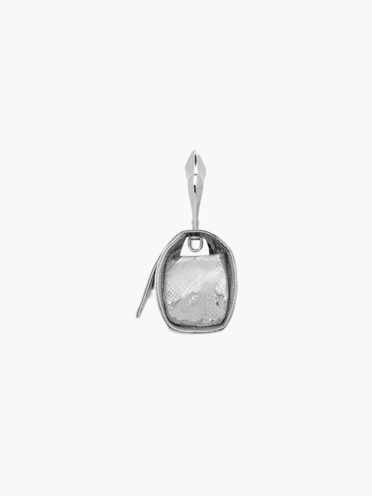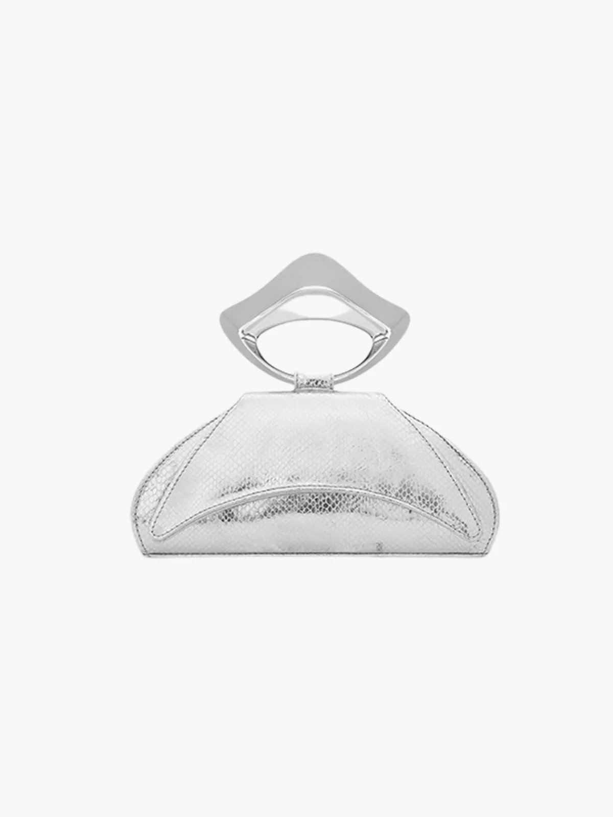 Our DanCassab Estel Bag in Black Silver features a perfectly shaped handbag with sharp edges and fold closure. Embellished with a metal handle. Handcrafted by artisans in Italy.