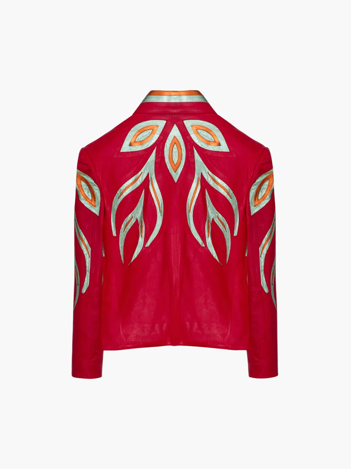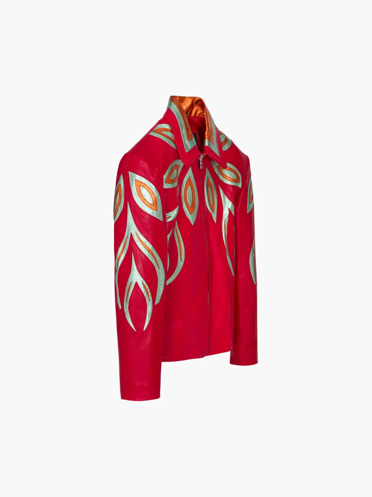 Our DanCassab Fire Jacket is hand-embroidered with colorful, intricate details. This piece features a classic zip front silhouette with long sleeves and a pointed collar with contrast trim. Handcrafted by artisans in Mexico using materials that are byproducts of the local food industry and are vegetable-dyed. Each piece takes up to a week to create by hand.