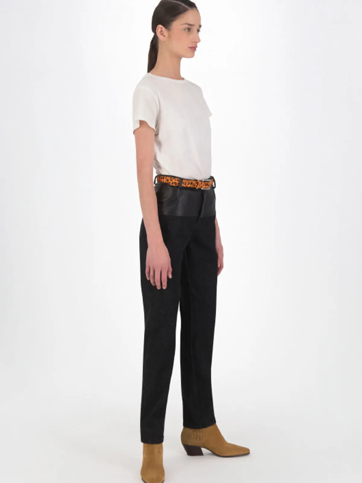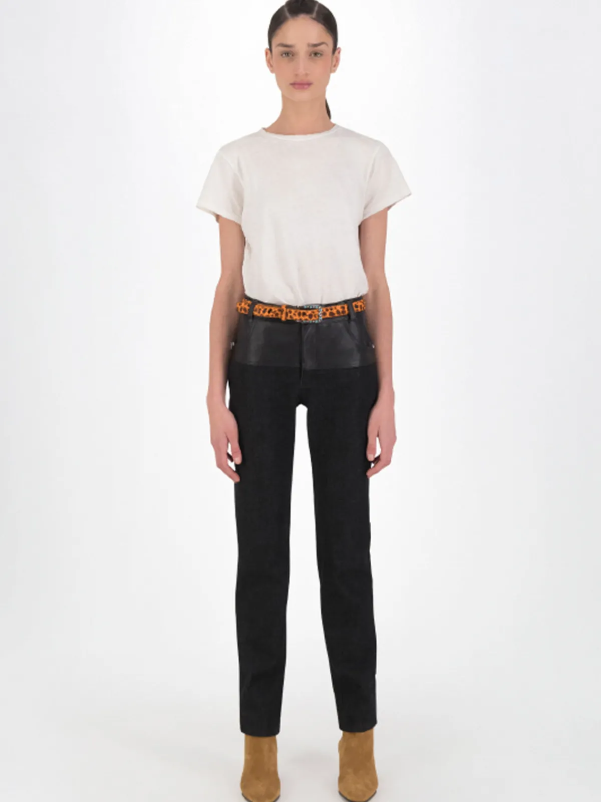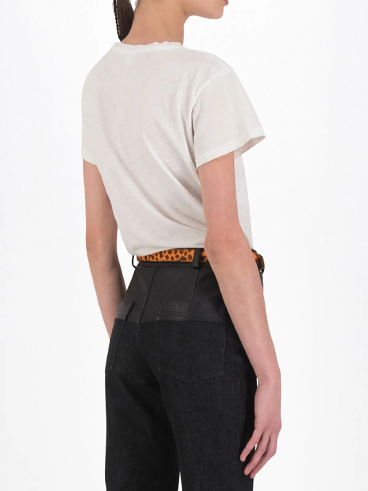 Our DanCassab Gaia Belt in Orange Brown features a fun animal print with silver and turquoise embellished buckle. Handcrafted by artisans in Mexico.