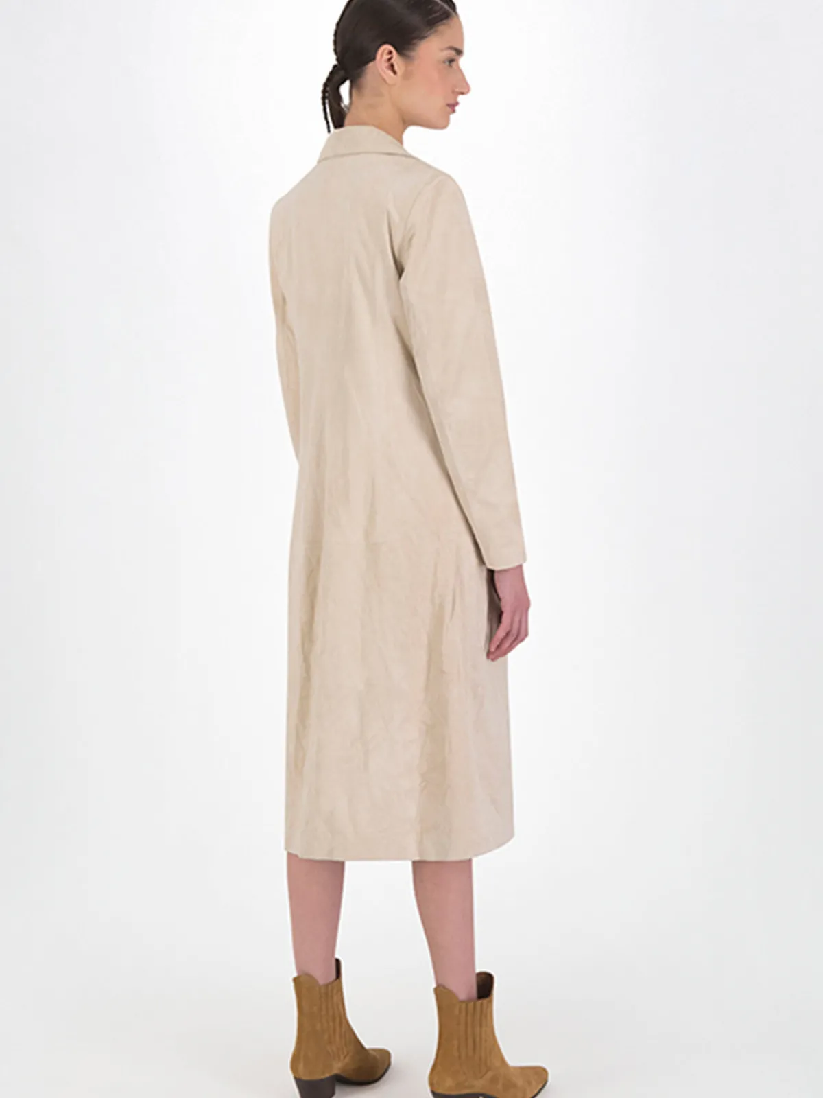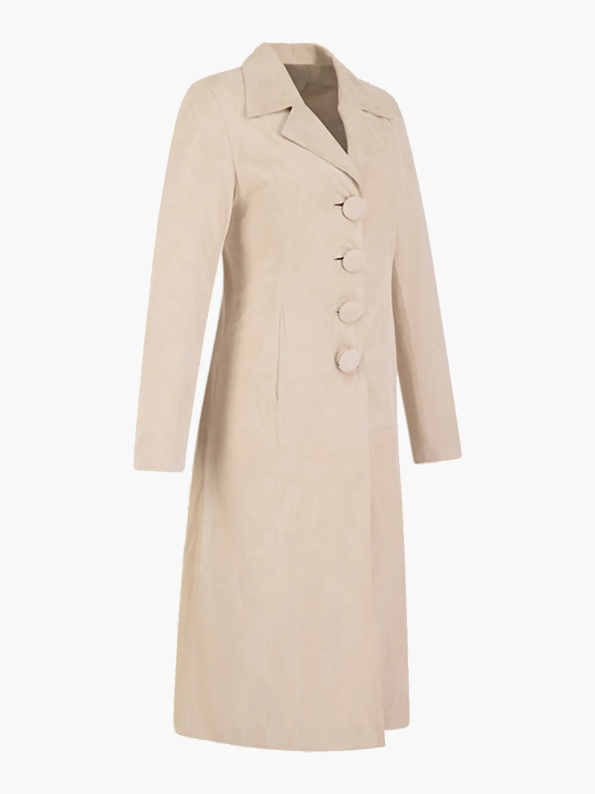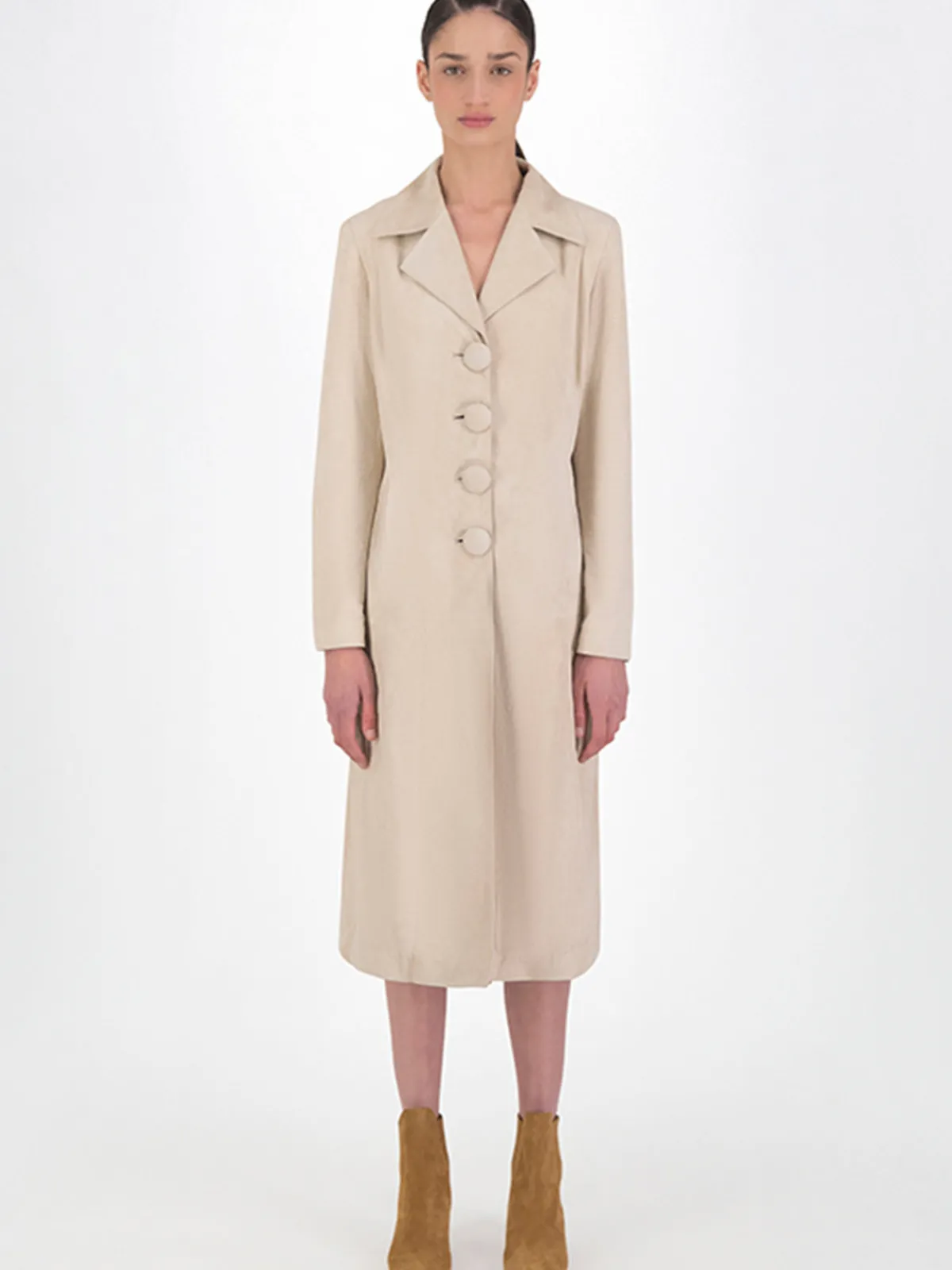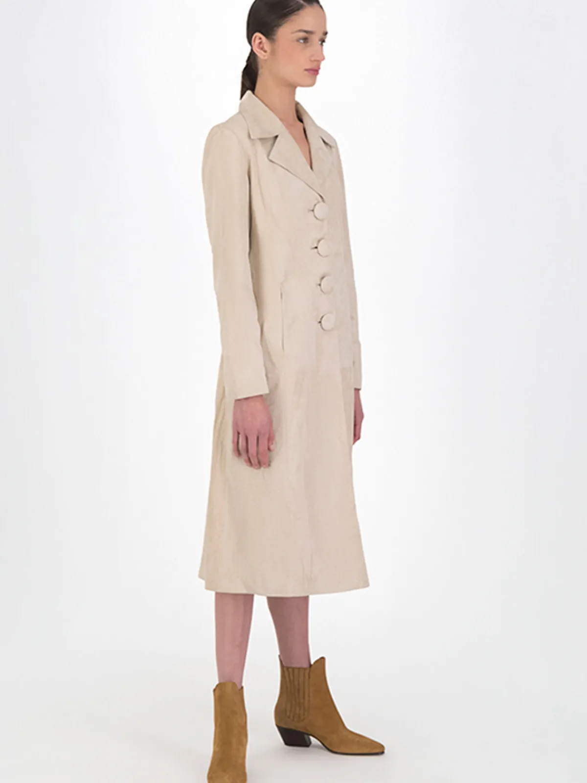 Our DanCassab Grisi Coat in Beige features a knee length silhouette with single breasted construction, buttons down the front, and notched lapels. It’s detailed with two side pockets. Handcrafted by artisans in Mexico.