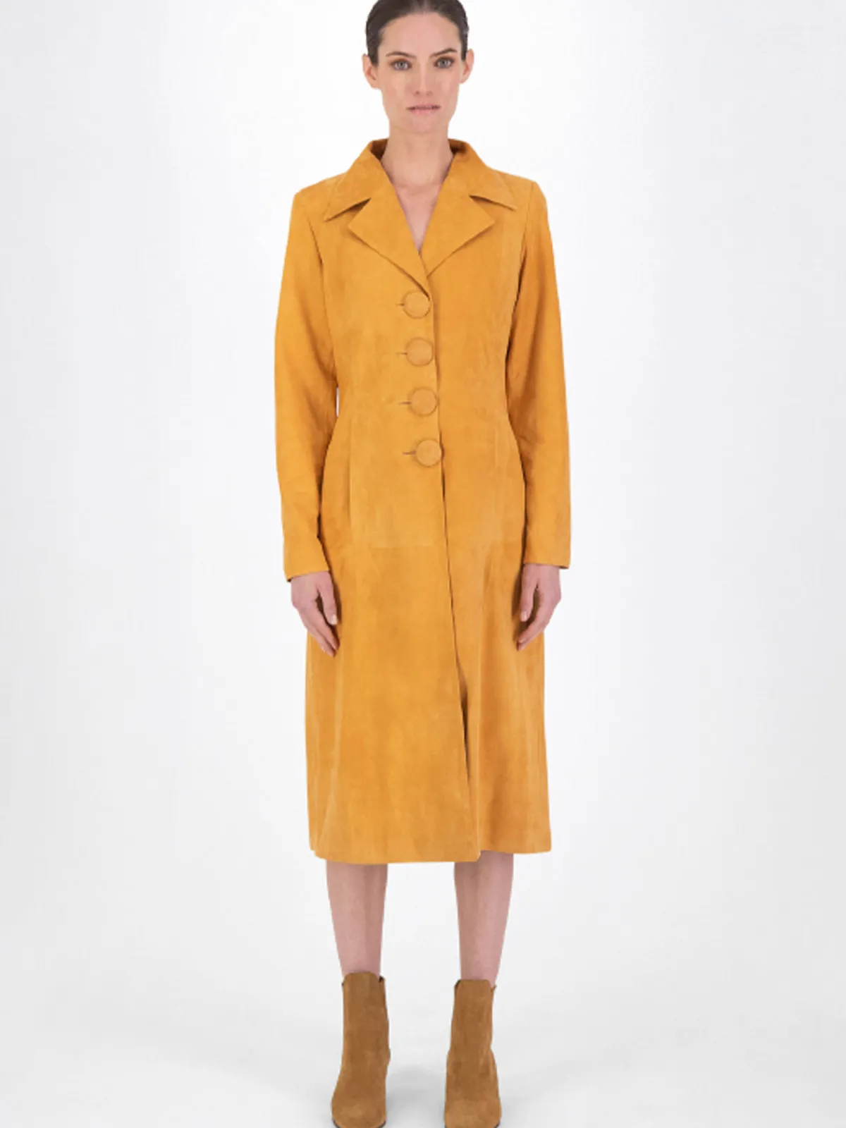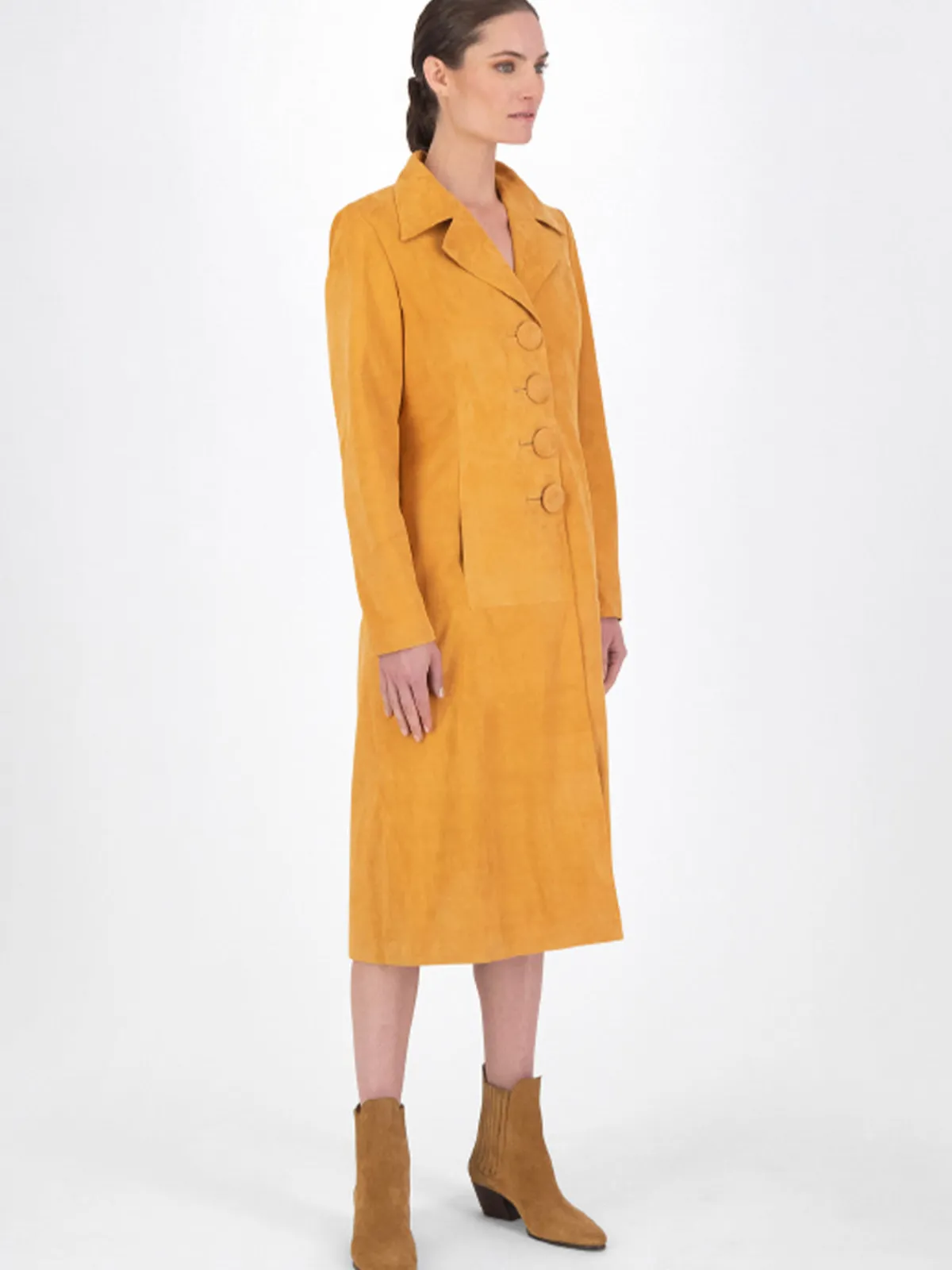 Our DanCassab Grisi Coat in Orange features a knee length silhouette with single breasted construction, buttons down the front, and notched lapels. It’s detailed with two side pockets. Handcrafted by artisans in Mexico.