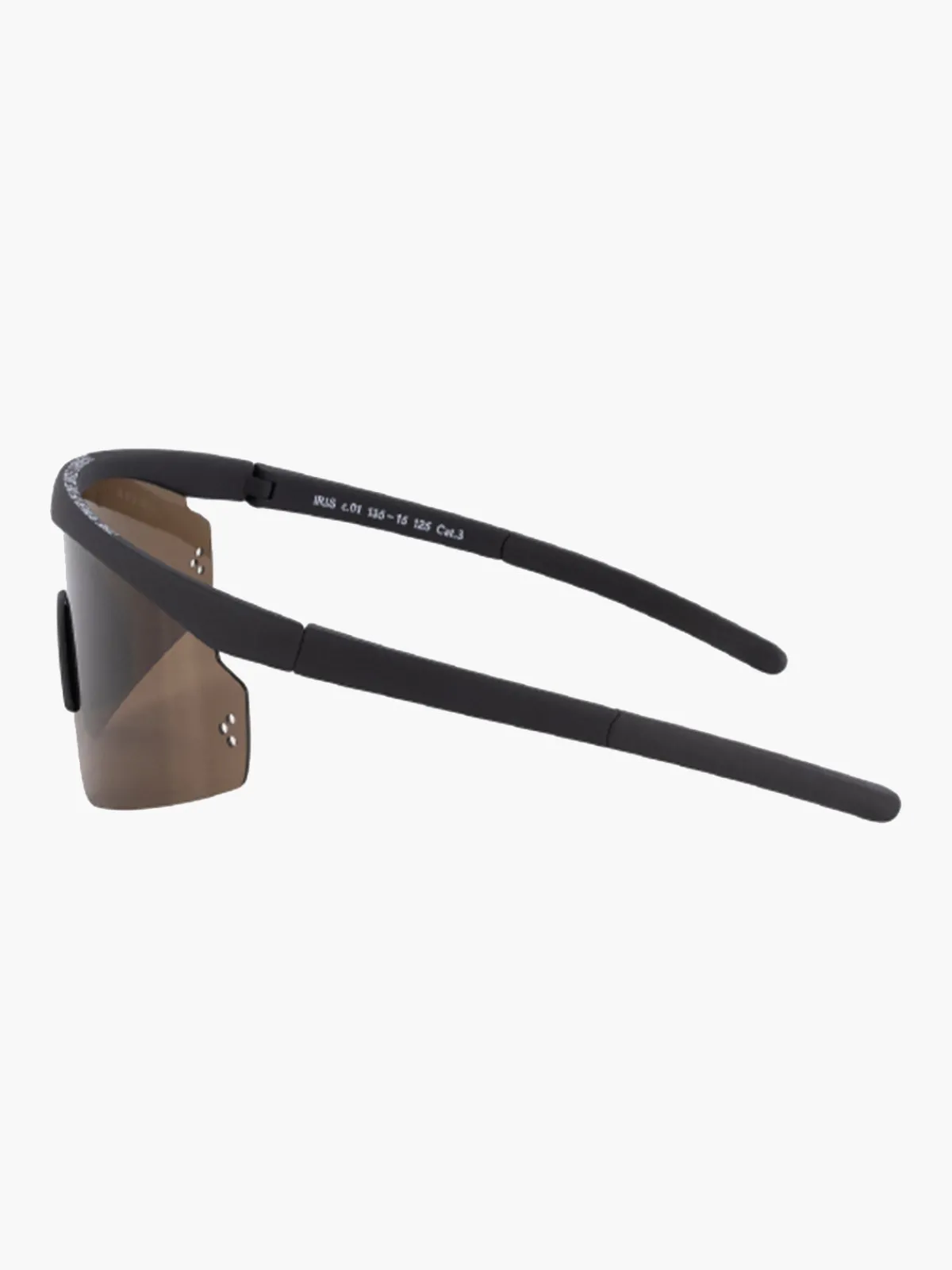 Our DanCassab Ines Lenses in Black feature a futuristic TR90 frame with sleek design. Polycarbonite frames attached to dark lenses. Handcrafted by artisans in Italy.
