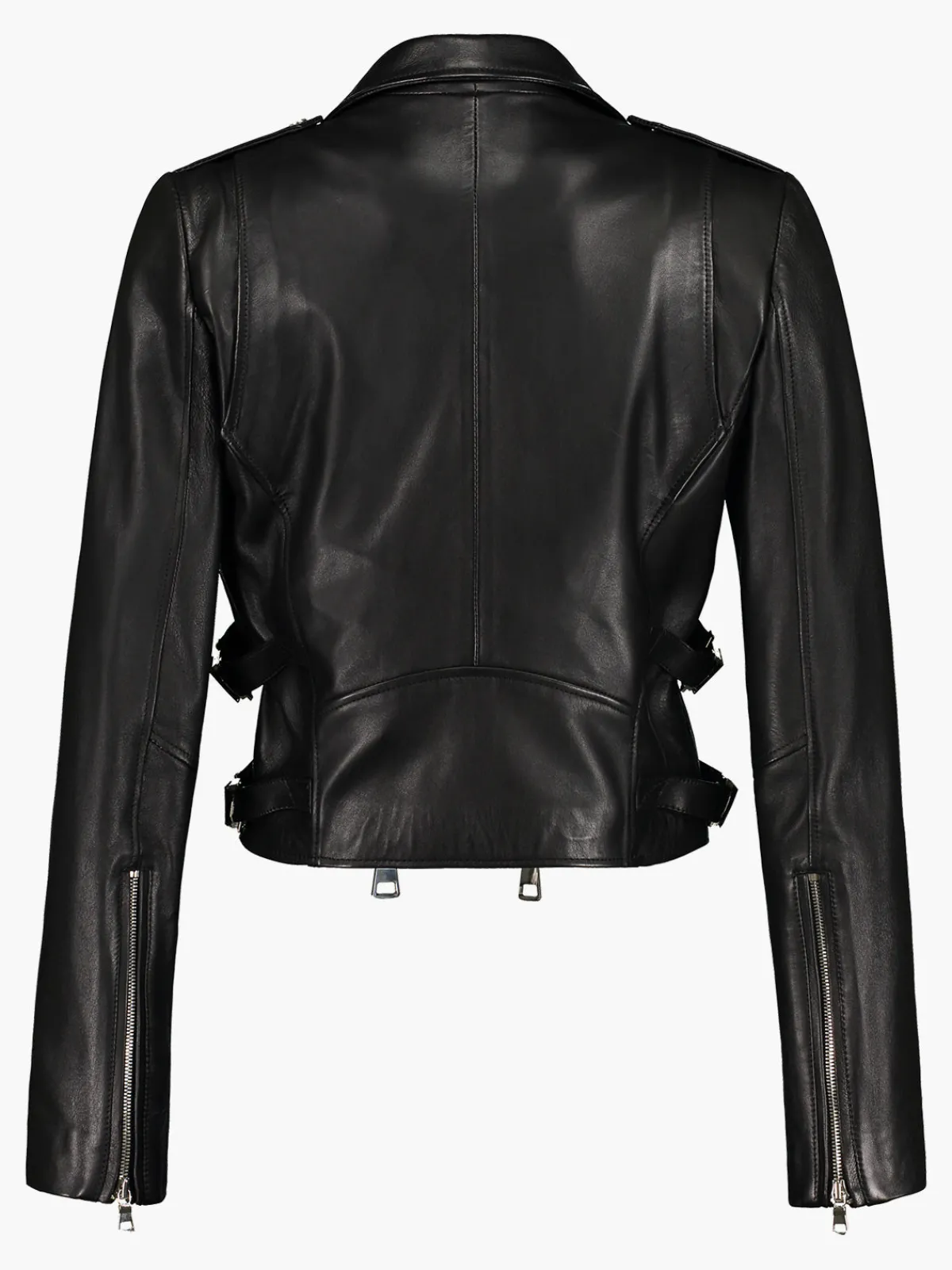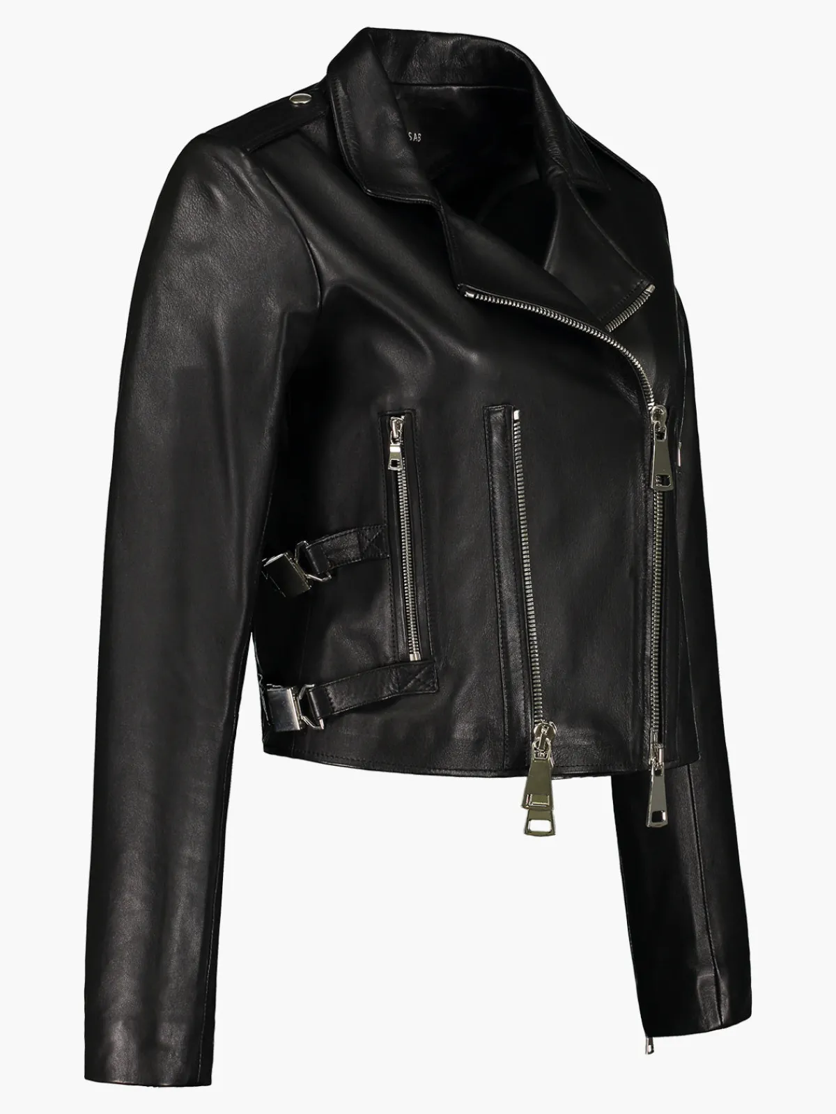 Our DanCassab Lucia Jacket in Black features a moto silhouette in a cropped length with double front zippers, two front zipper pockets, zippered cuffs, and two accent straps on each side. Handcrafted by artisans in Mexico.