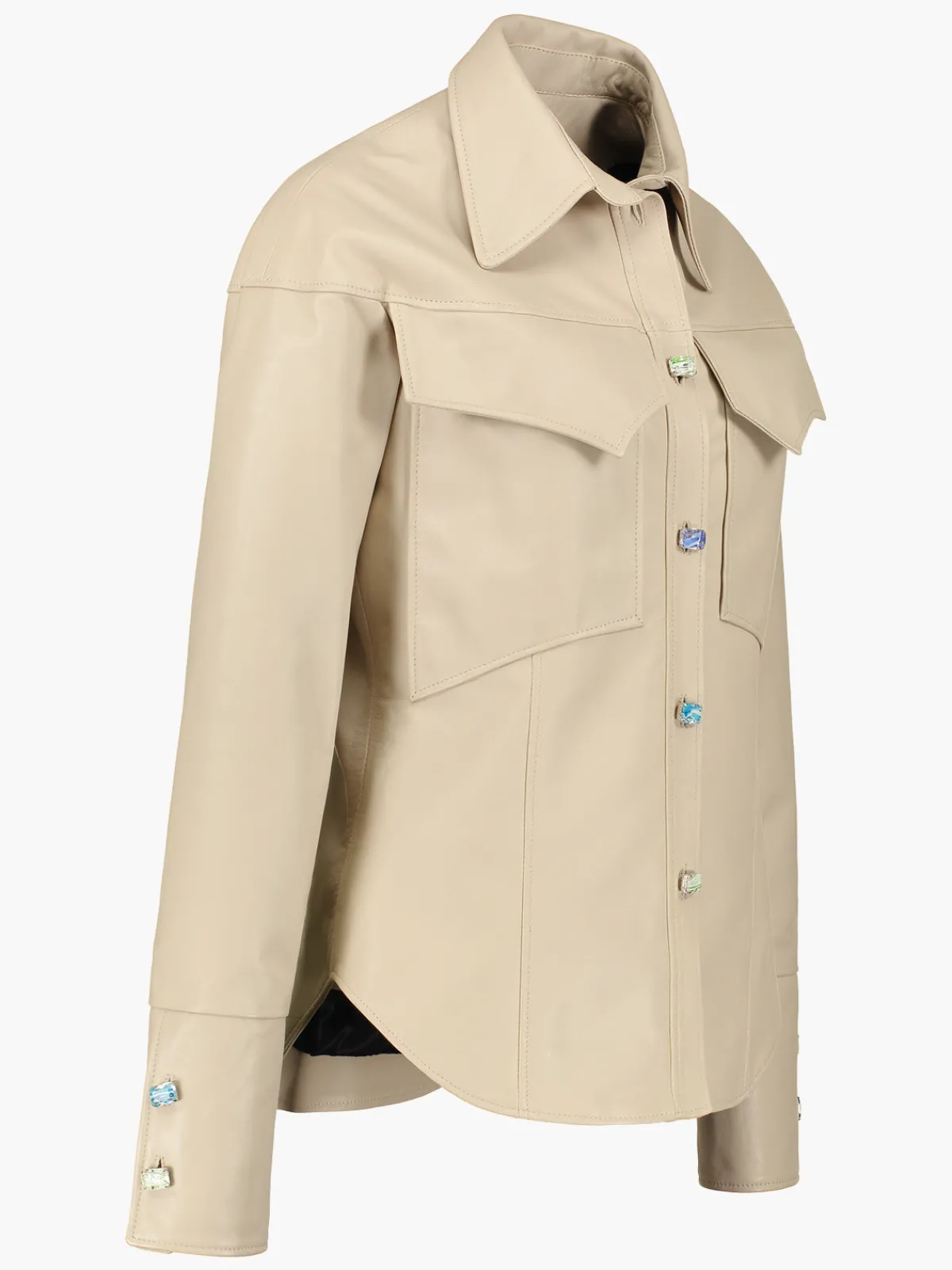 Our DanCassab Maria Shirt features a relaxed silhouette with a collar, crystal bead buttons down the front, and flap pockets on the chest. Handcrafted by artisans in Mexico.