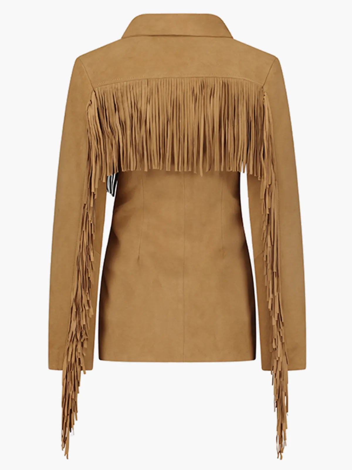 Our DanCassab Rivera Jacket in Brown features a fitted silhouette with long sleeves, a collar with notched lapels, and fringe trim that runs across the chest, across the back, and down the sleeves. It’s detailed with button closures and front pockets with additional fringe trim.Handcrafted by master artisans in Mexico from responsibly sourced by-product materials.