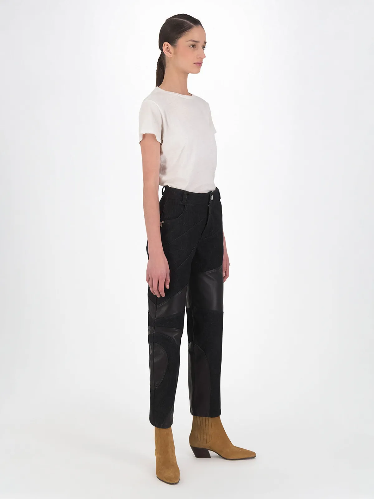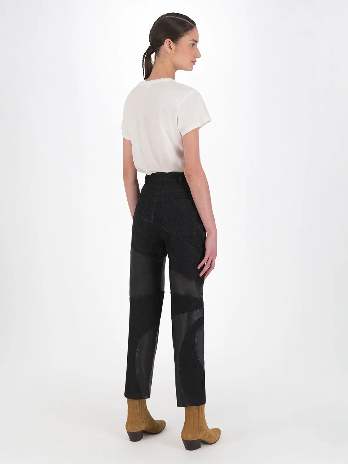 Our DanCassab Tokyo Pants in Black feature a straight leg silhouette with a high waist and pieced details on the legs. Detailed with front and back pockets. Handcrafted by artisans in Mexico.