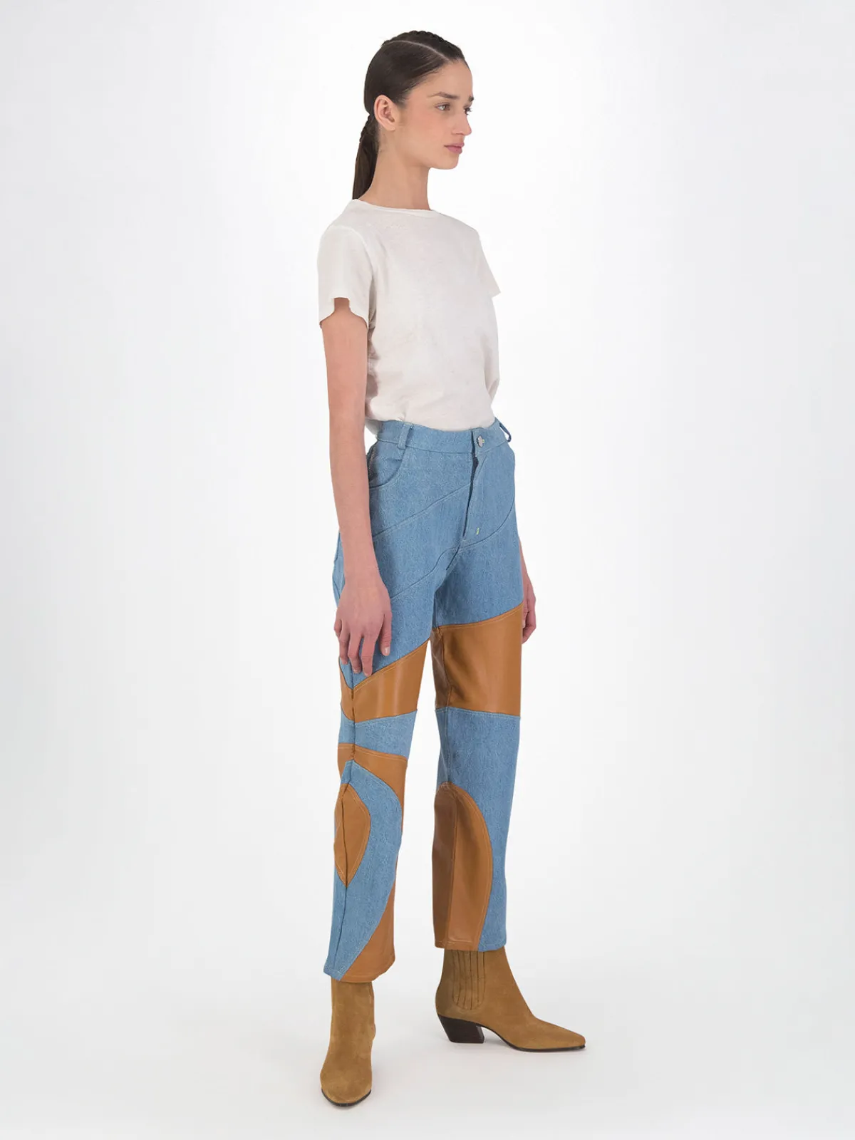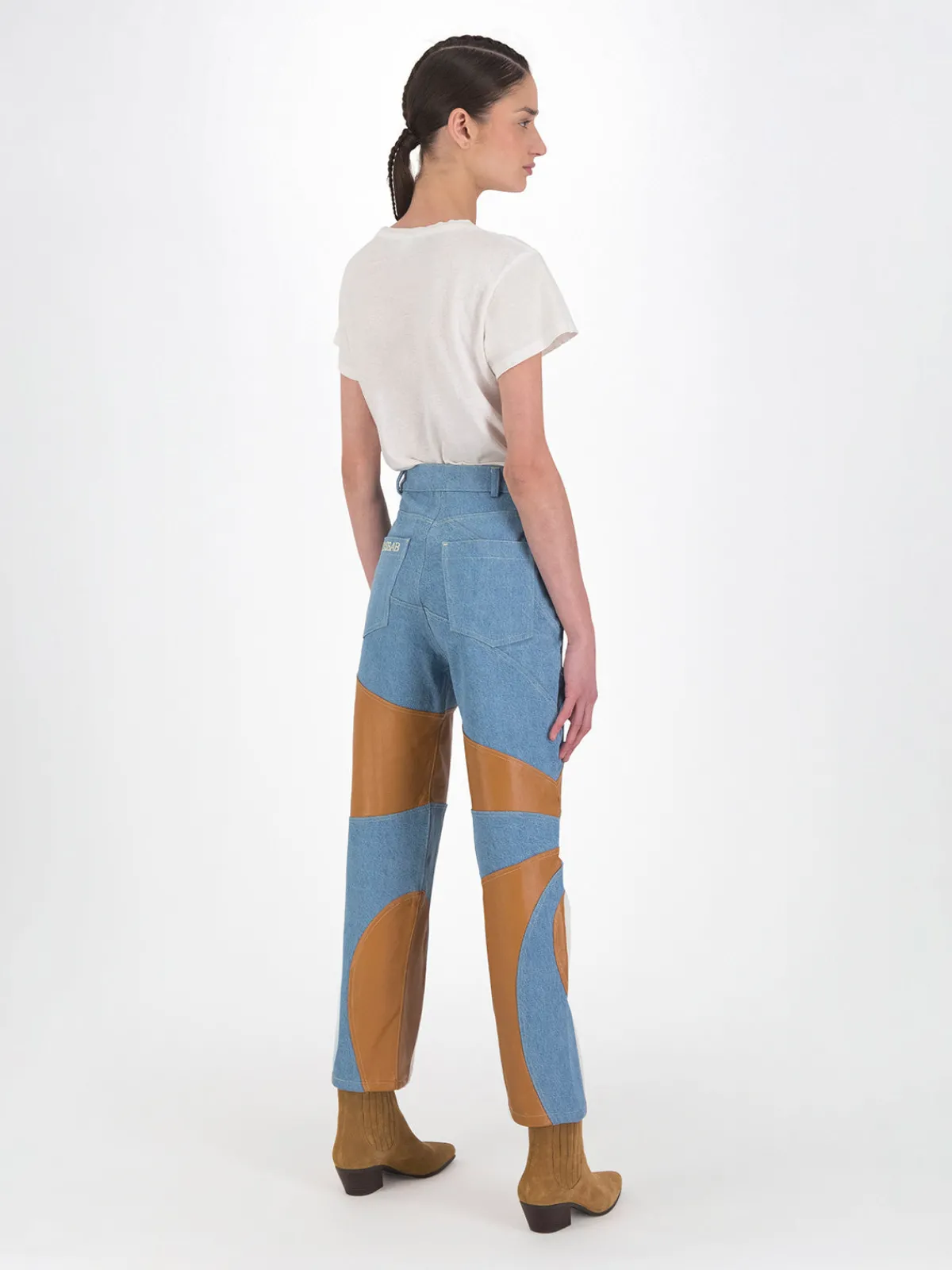Our DanCassab Tokyo Pants in Blue Maple feature a straight leg silhouette with a high waist and pieced details on the legs. Detailed with front and back pockets. Handcrafted by artisans in Mexico.