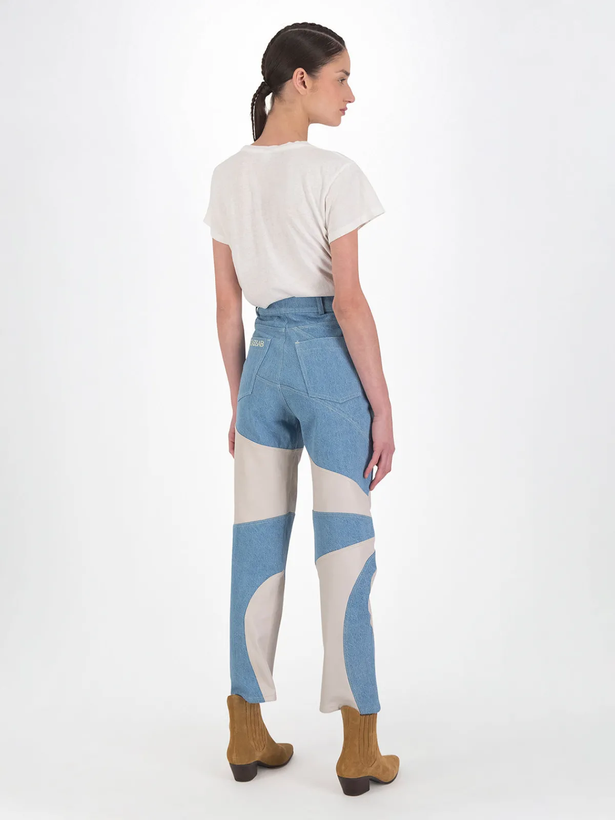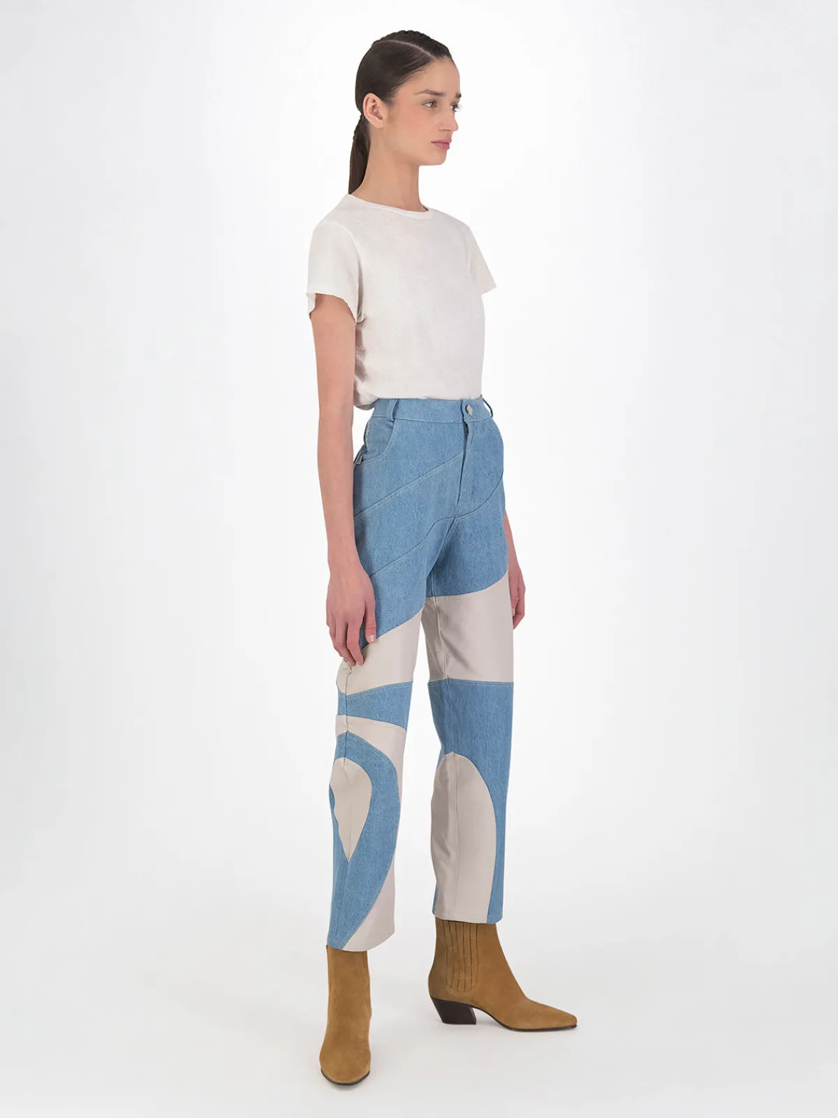 Our DanCassab Tokyo Pants in Blue Moon Grey feature a straight leg silhouette with a high waist and pieced details on the legs. Detailed with front and back pockets. Handcrafted by artisans in Mexico.
