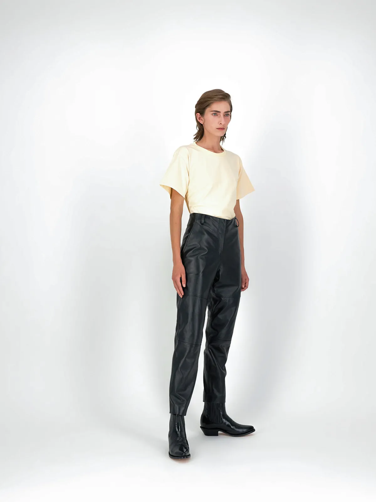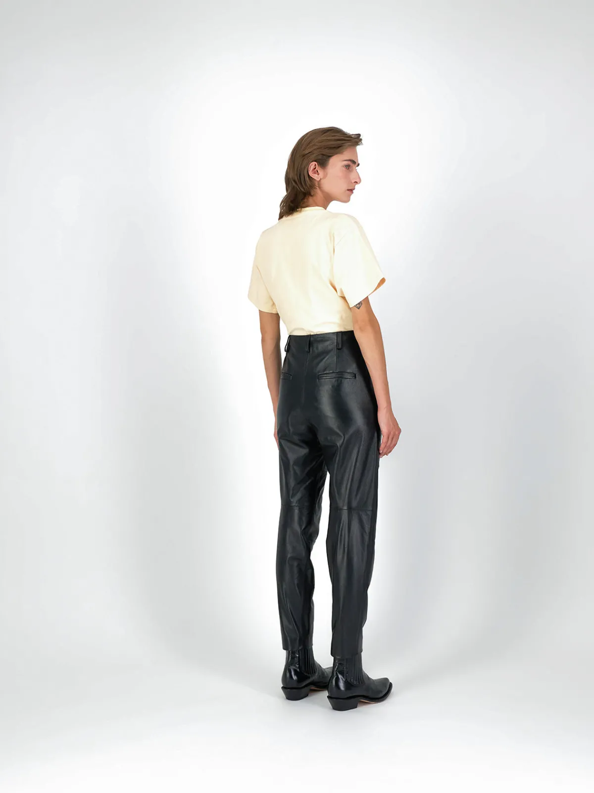 Our DanCassab Verona Pants in Black feature a straight leg silhouette with a high waist, slant front pockets, back besom pockets, and belt loops. Handcrafted by artisans in Mexico.