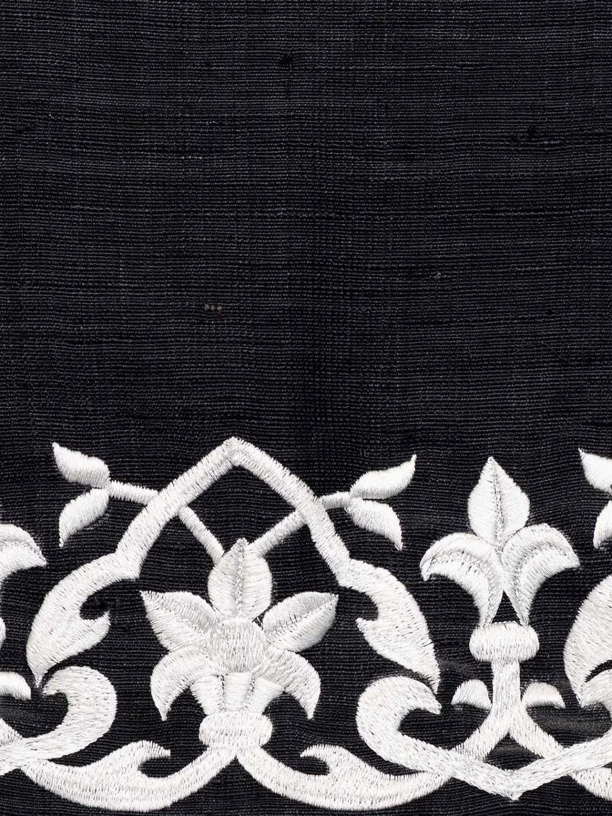 Our De Castro Laura Trousers boast a high waist silhouette with wide legs, back welt pockets, and contrast embroidery at the hem. Handcrafted by artisans in India.