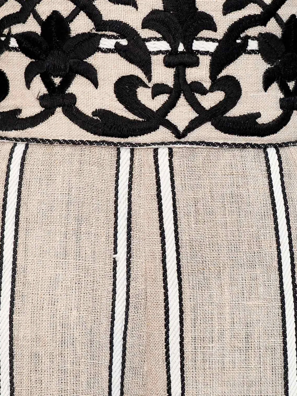 Our De Castro Mermaid Trousers in Beige feature a wide leg silhouette with flared legs, a high waistband, and a machine-embroidered waist. They’re finished with a center back zipper. Handcrafted by artisans in India.