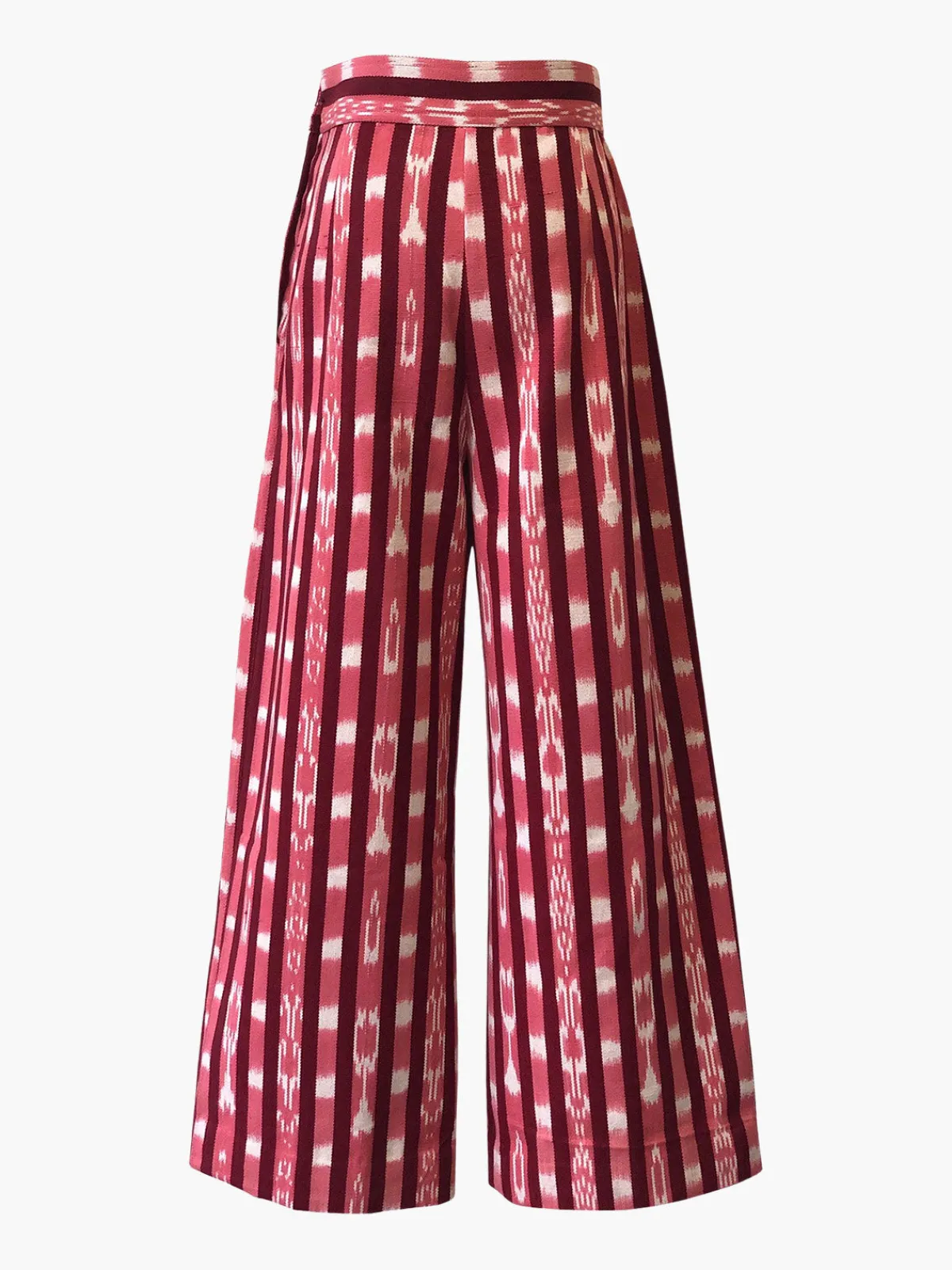 Our De Castro Pink City Trousers feature a wide leg silhouette with a high waistband and a row of buttons down the side. Handcrafted by artisans in India.