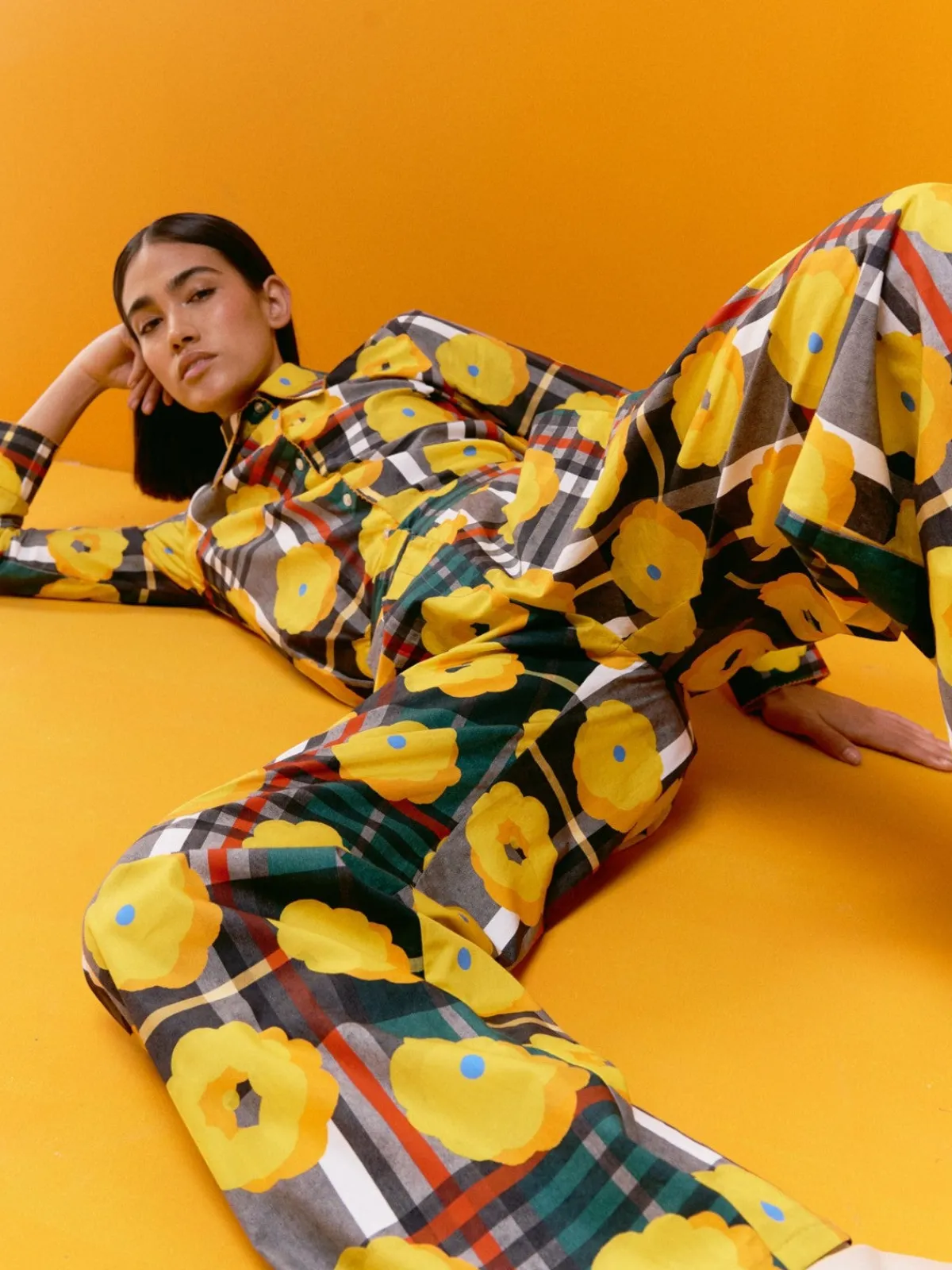 Our De Loreta Jicama Pants in Tartan are timeless in a high waist silhouette with straight legs and a bold allover print. Handcrafted by female heads of households in Peru.