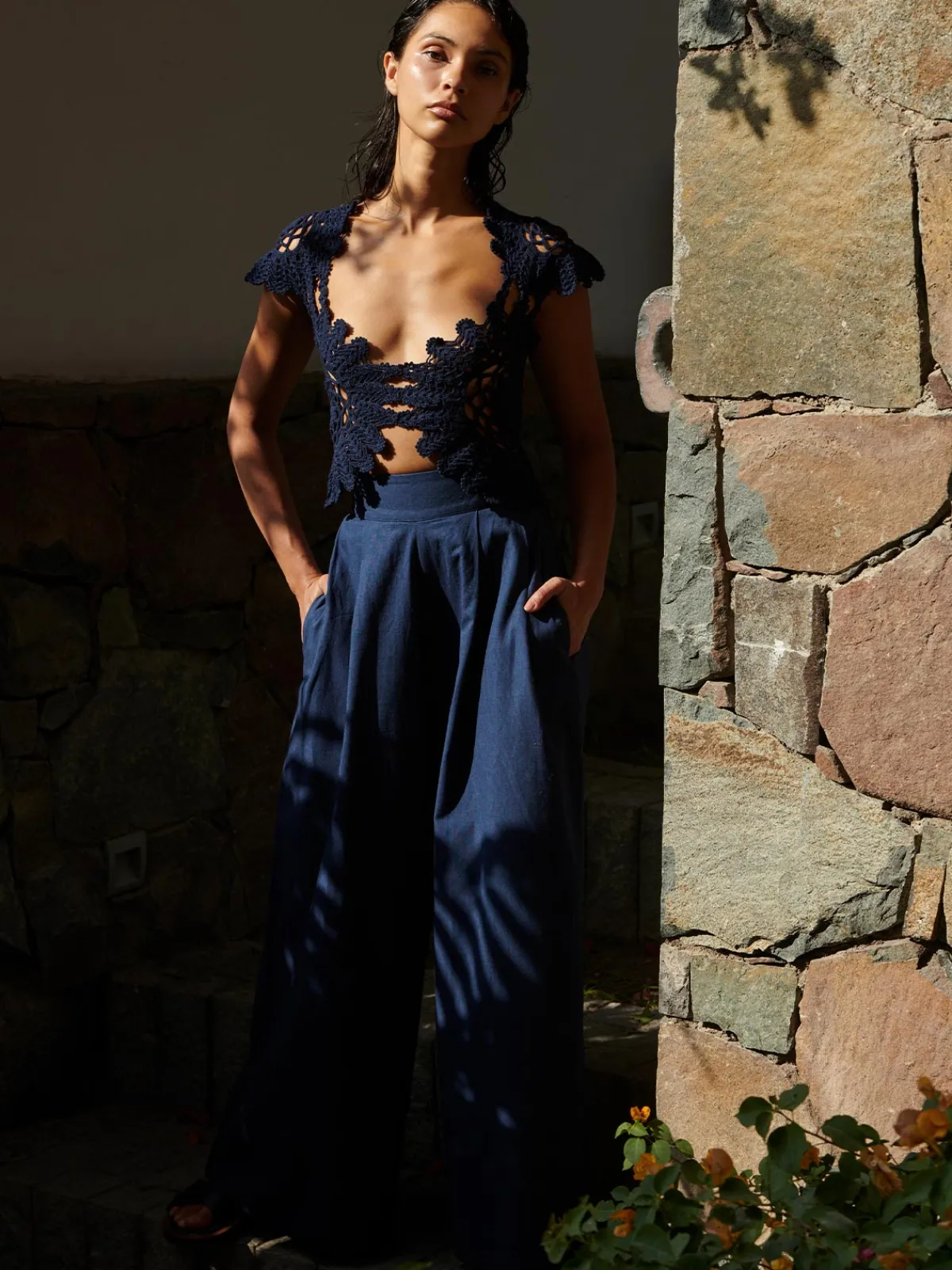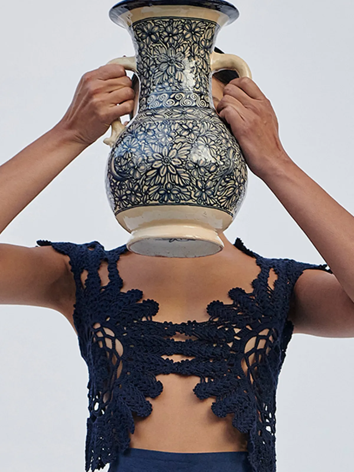 Our ESCVDO Hibiscus Top is a fitted pull-on crop top that features short sleeves and a soft heart neckline. Constructed by knitting together different crocheted pieces. Handcrafted by female artisans in Peru.