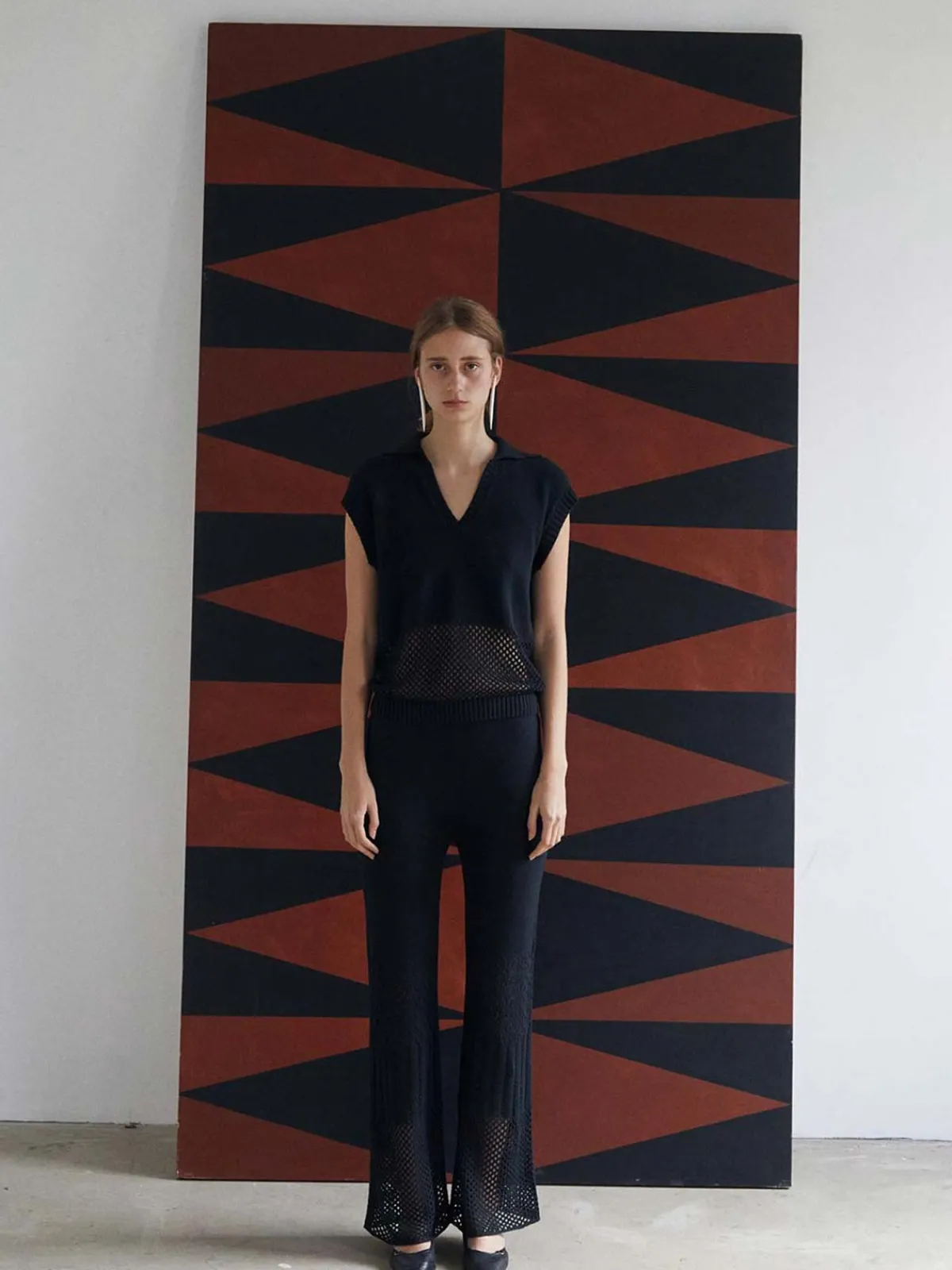 Our ESCVDO Lia Pants in Black are flattering boot cut pants with open weave detailing at the calves. Crafted by Mario Quispe in her workshop in Puente Piedra, Lima, Peru.