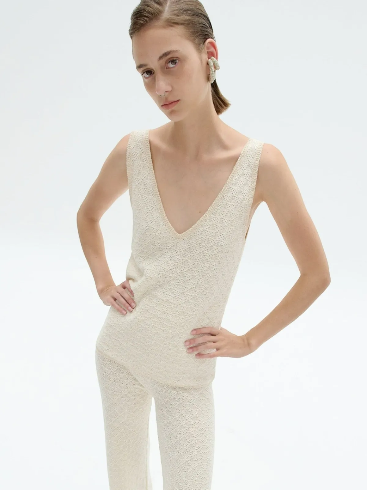 Our Escvdo Malecon Tank Top in Ivory is a V neck tank top that you can wear with the v in the front or back. This item was handcrafted by Miriam Garay in her workshop in Huarochirí, Peru.