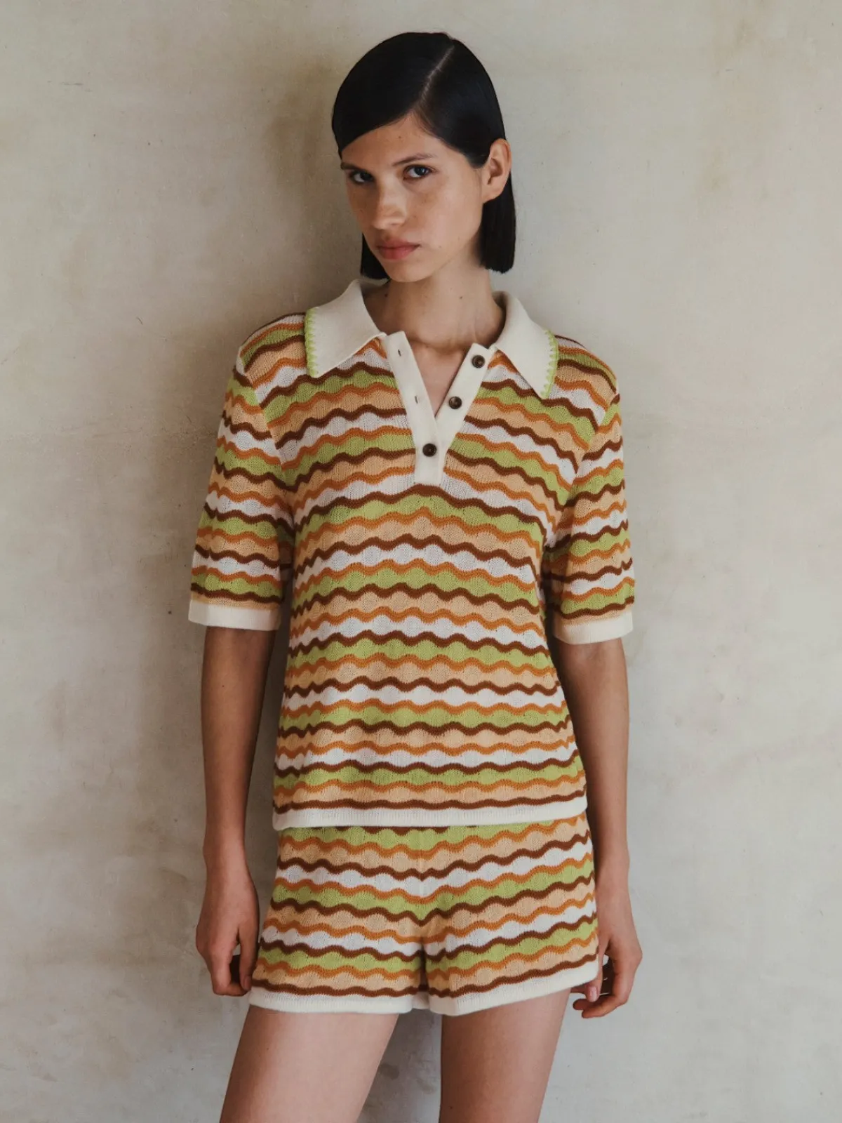 Our ESCVDO Mullu Shorts in Orange/Lime are a mini knit short with a ribbed waistband. The shorts are a relaxed fit. Pair the shorts with the matching Mullu Polo for a full set. Handcrafted by female artisans in Peru.
