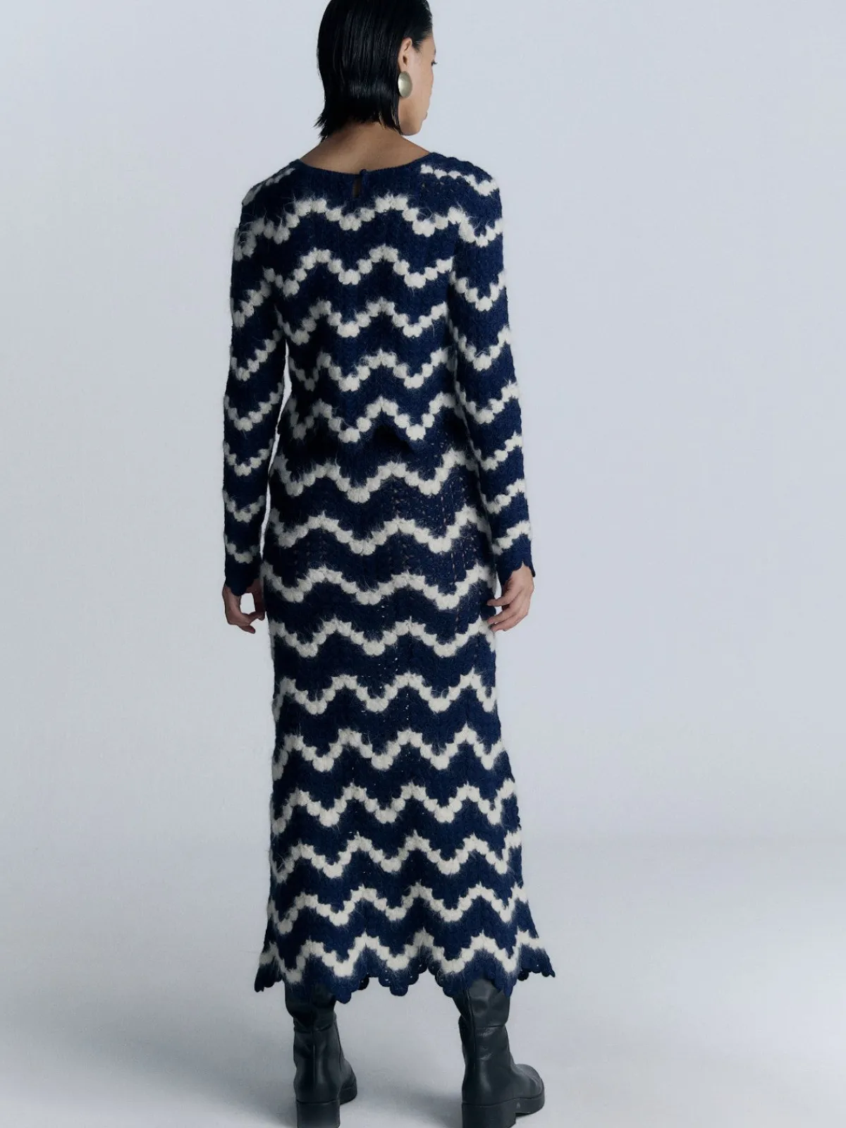 Our ESCVDO Safi Skirt in Blue/Ivory is a handmade crochet bottom in a multicolor pattern with a drawstring waistband. Handcrafted by female artisans in Peru.