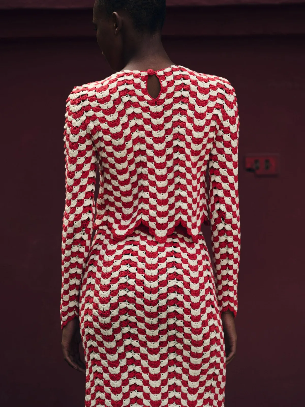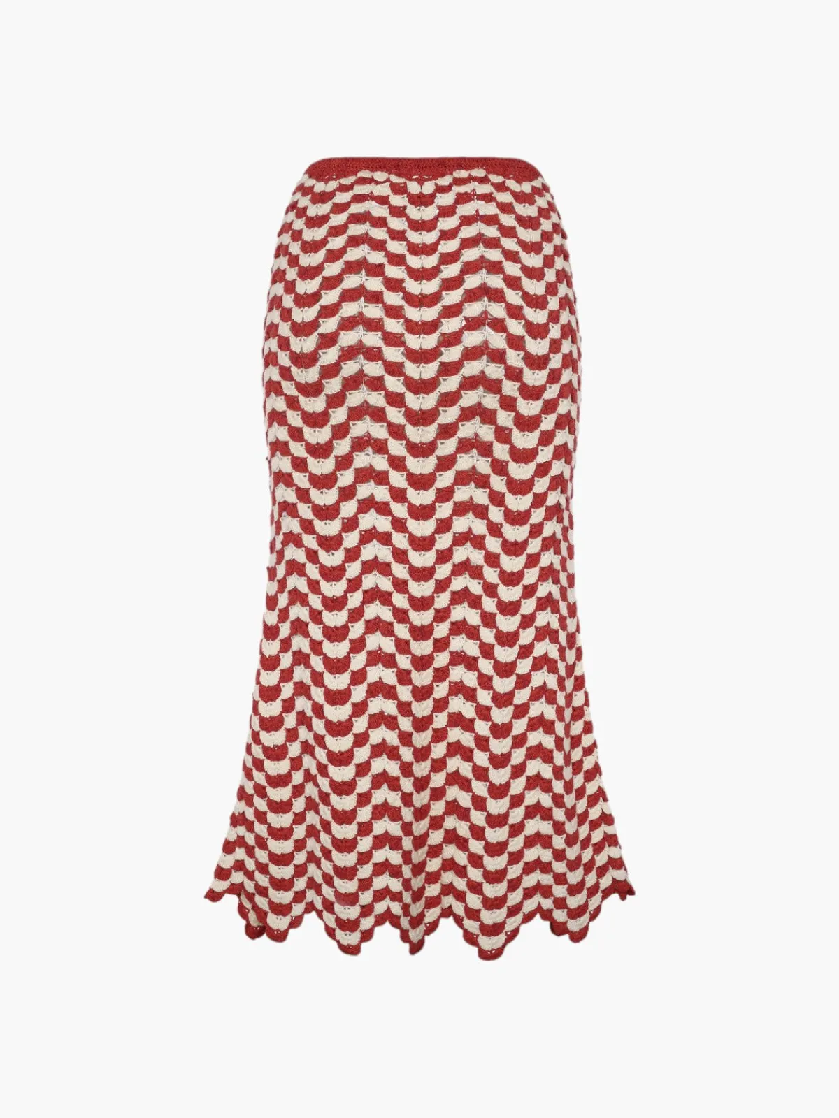 Our ESCVDOSafi Skirt in Pomelo is a midi length, mermaid skirt. The skirt has adjustable drawstrings with scallop hemline.Handcrafted byartisans in Peru.