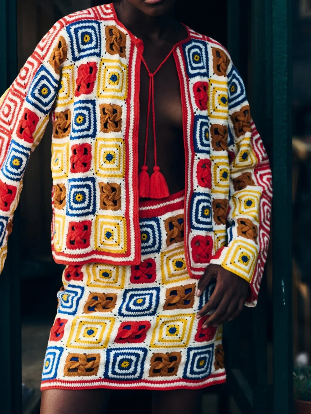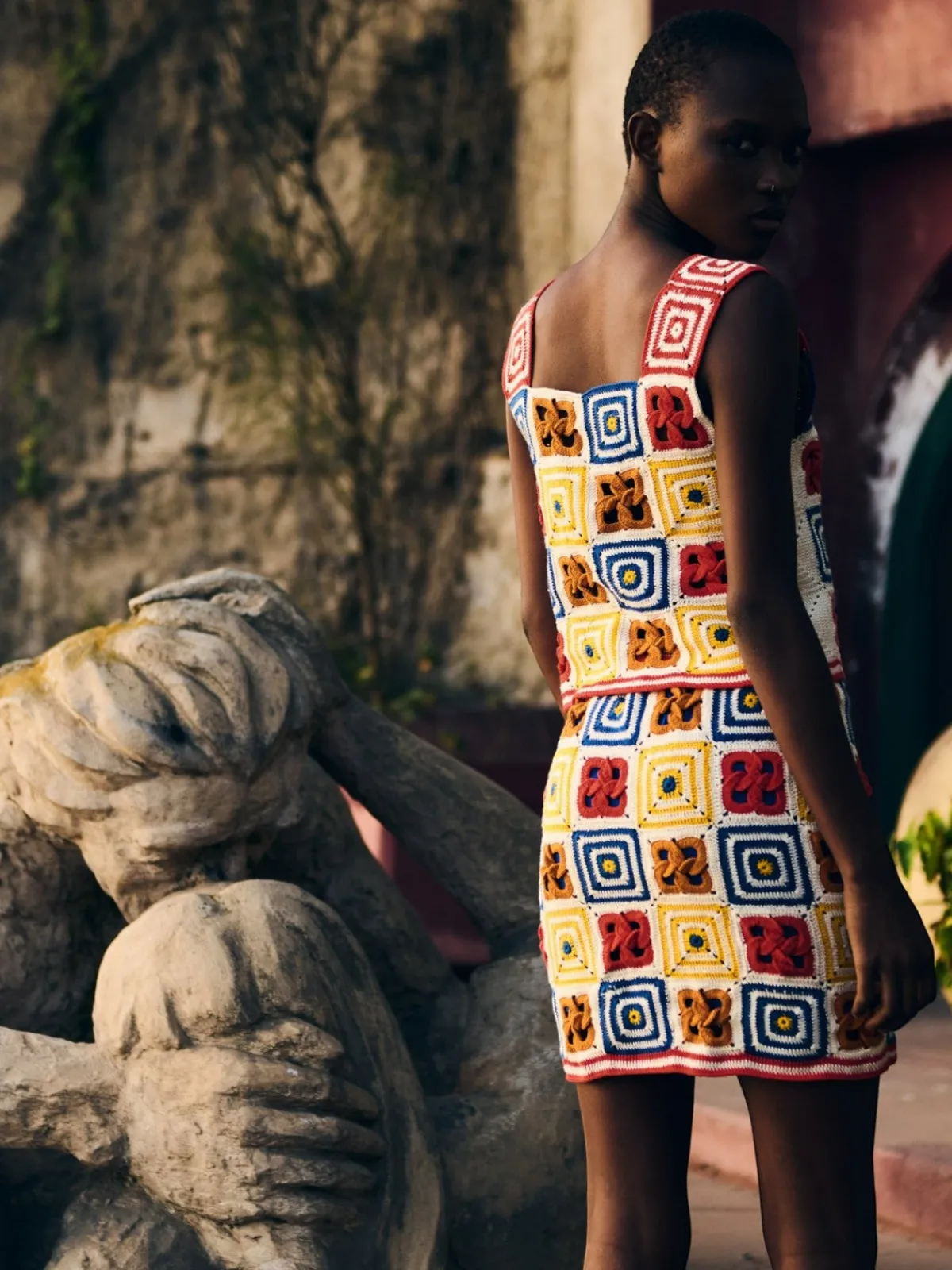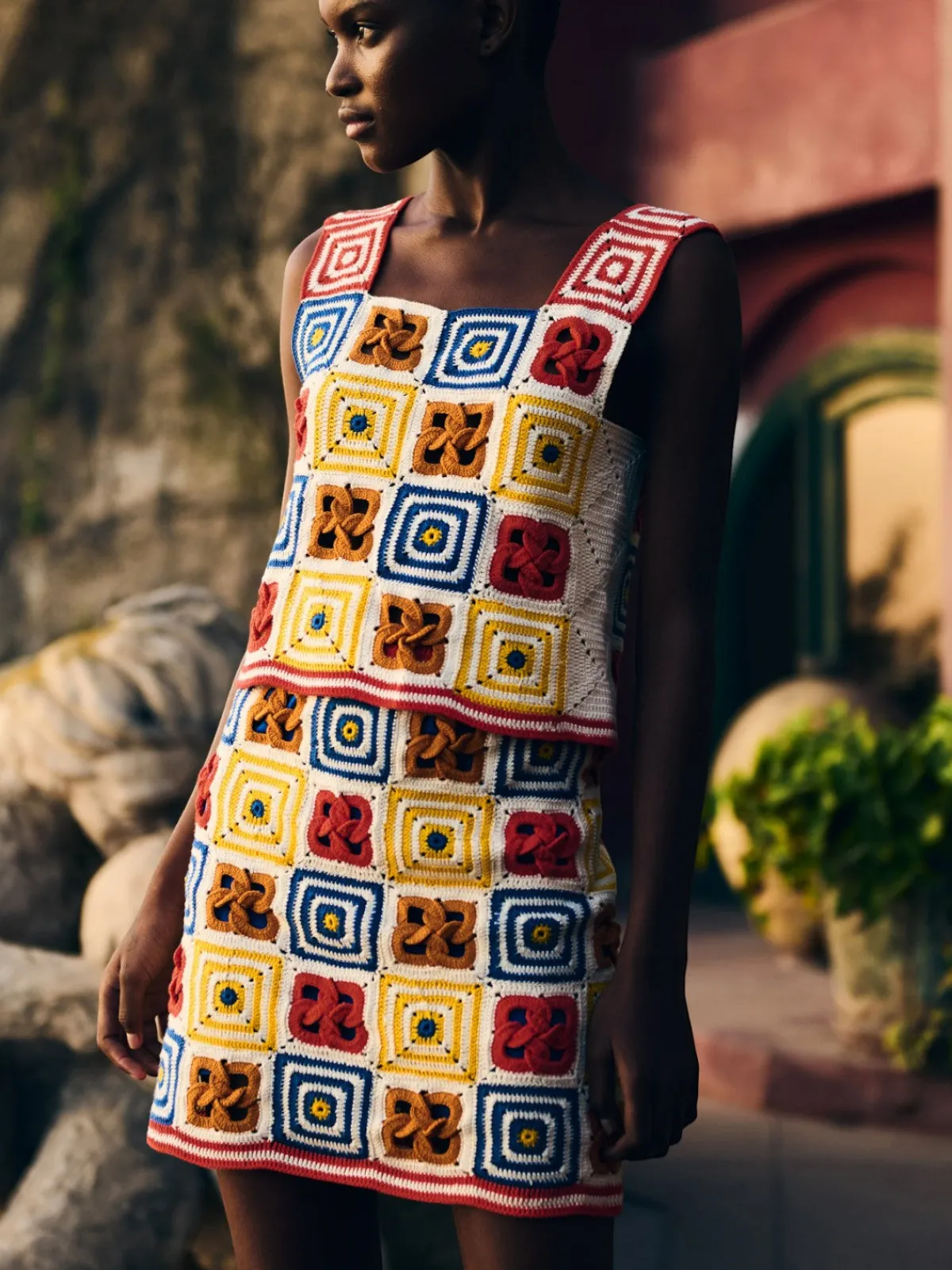 Our ESCVDO Santeria Skirt in Multi is a true to size mini skirt that sits high on the waist. Handcrafted by Olivia Ramos in her workshop in Huancayo – Peru.