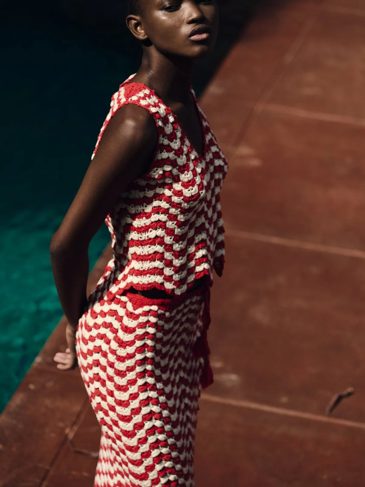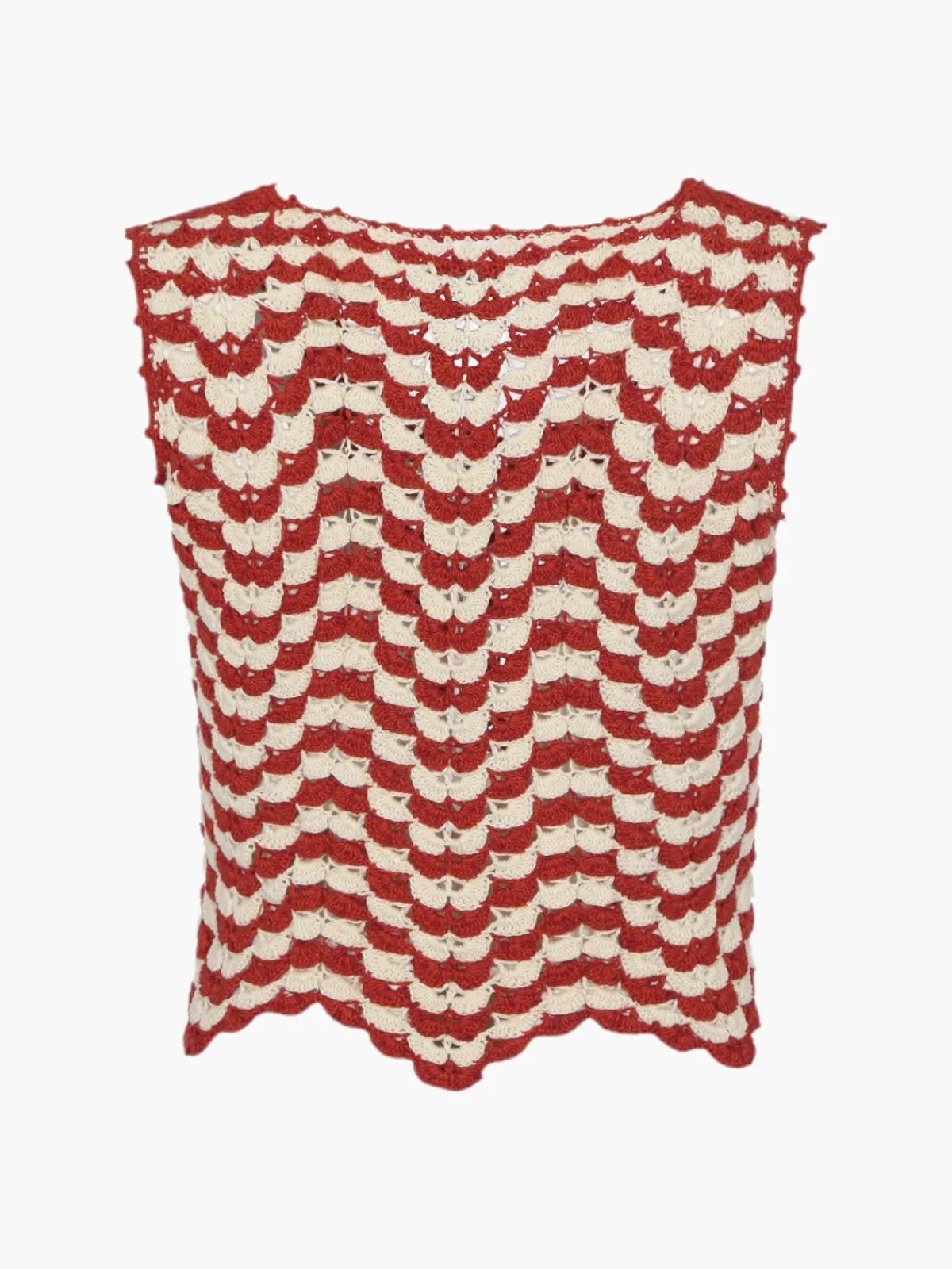 Our ESCVDO Suspiro Top in Pomelo is a fitted top with a v-neckline. The top has a scalloped hemline. Handcrafted by Linda Chaupe and her collective of artisans in Lima and Cusco, Peru.
