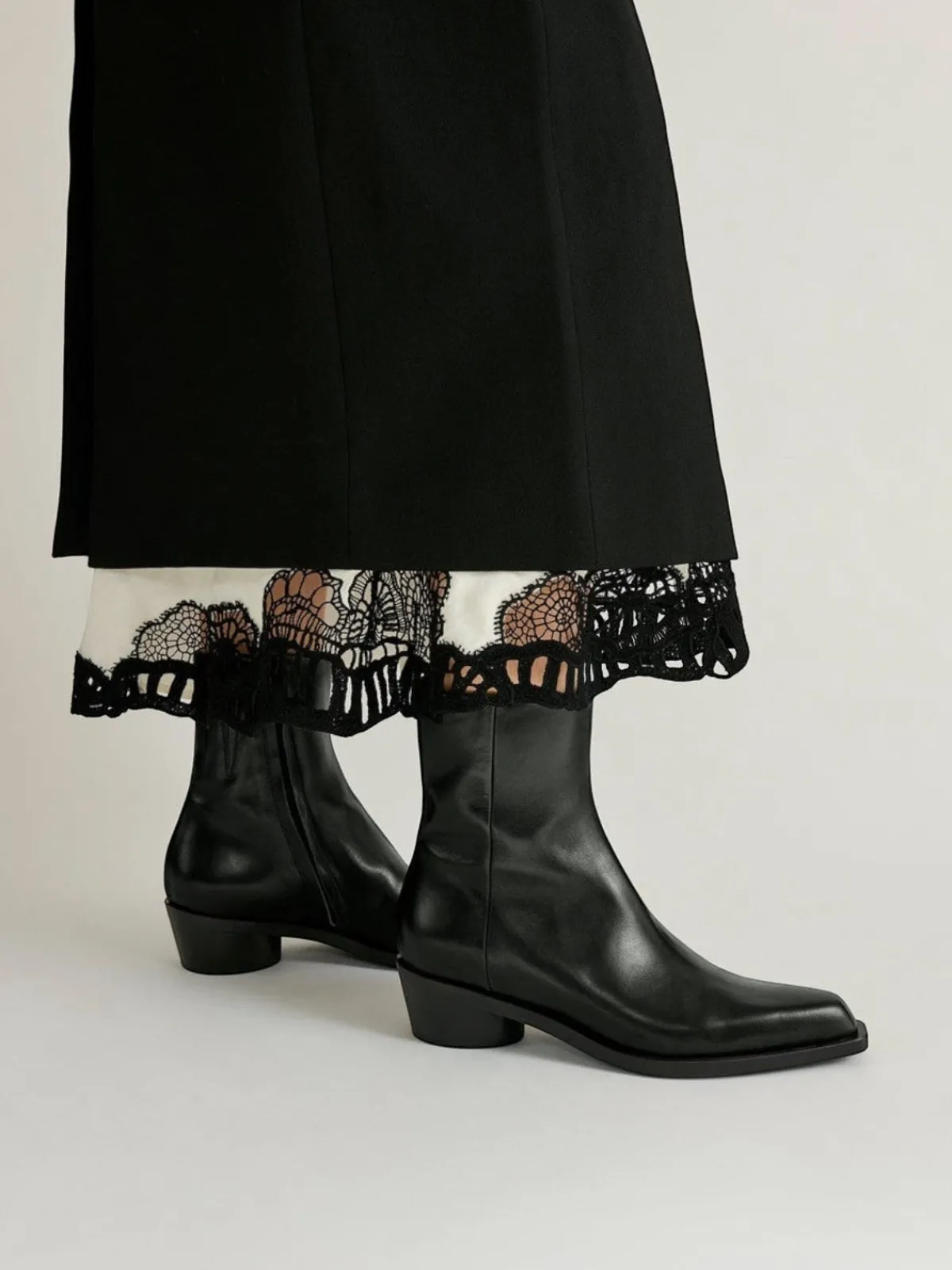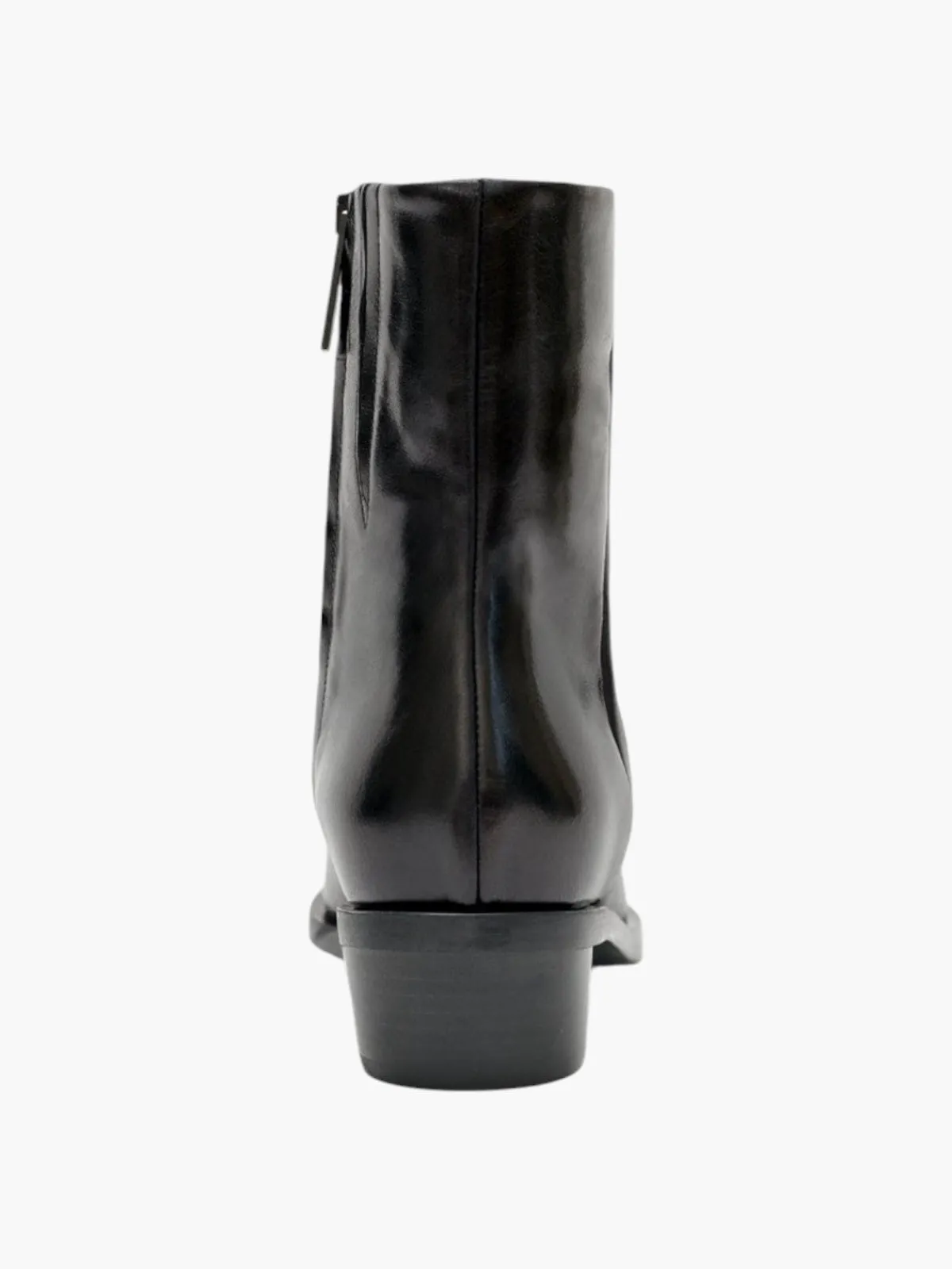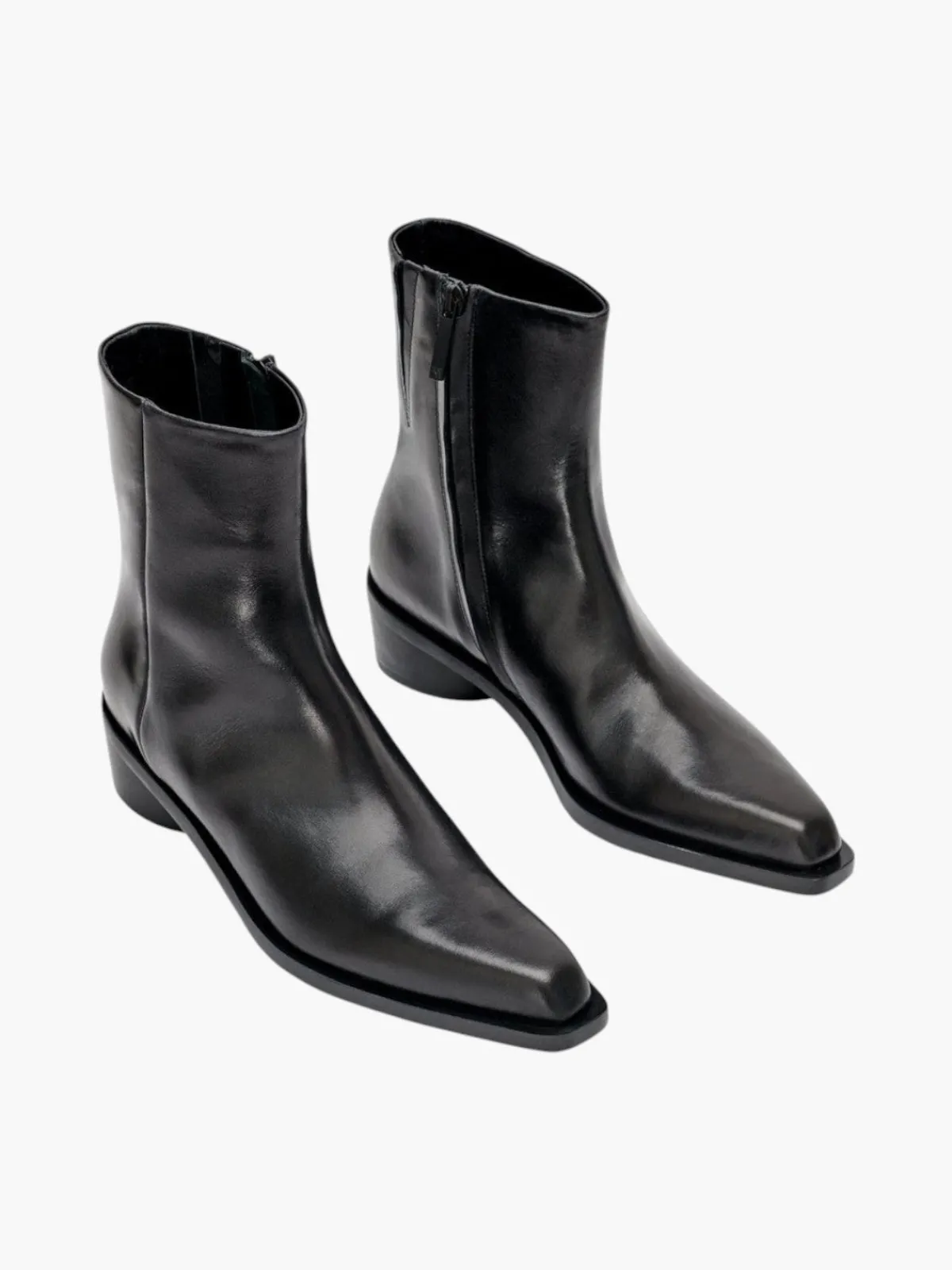 Our ESSEN The City Boot in Black is a square toe boot with a block heel. This sleek boot hits above the ankle and provides all day style and comfort. Handcrafted by artisans in Italy.