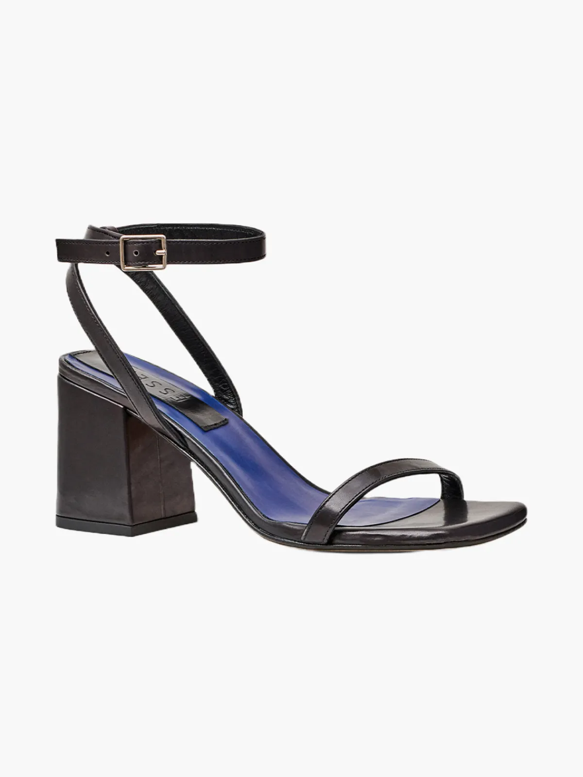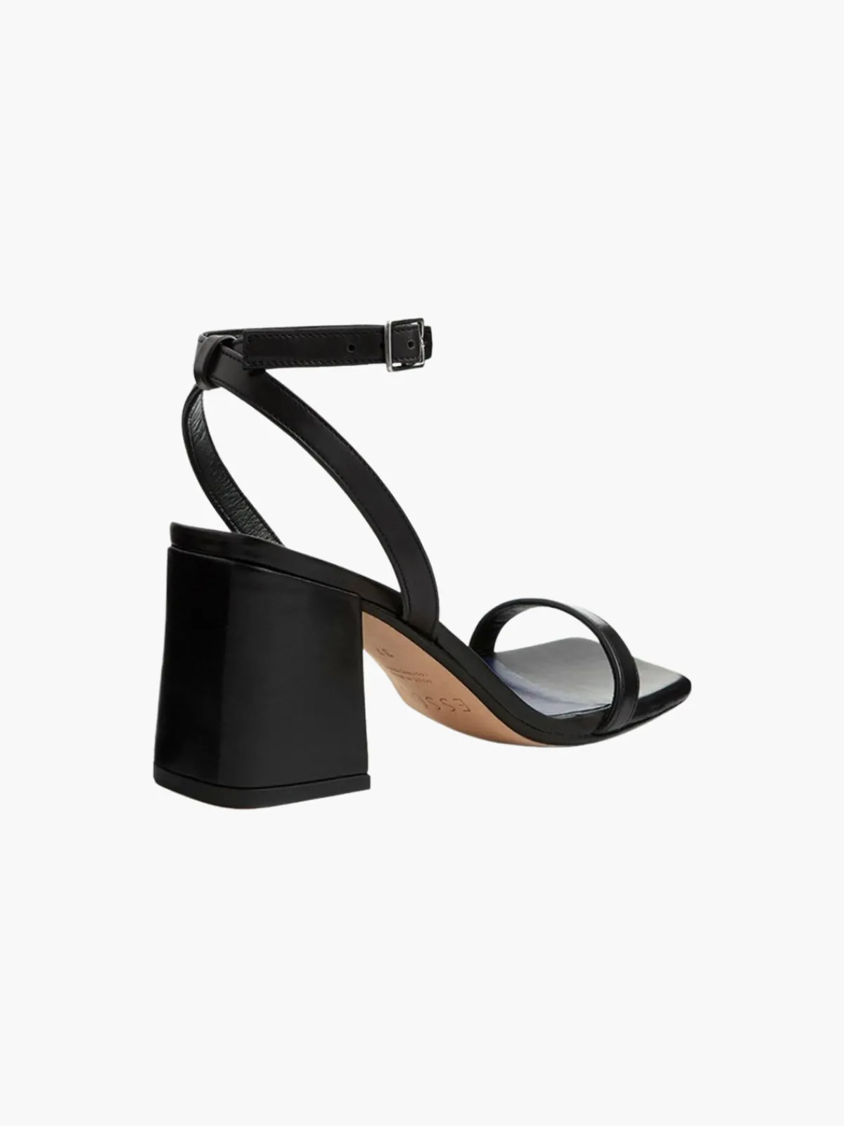 Our ESSEN The Elevated Essential in Black is versatile in a square toe silhouette with a slender strap across the toes, a block heel, and an adjustable ankle strap with a buckle closure. A padded insole makes them comfortable for wearing all day and all night. Handcrafted by artisans in Spain.