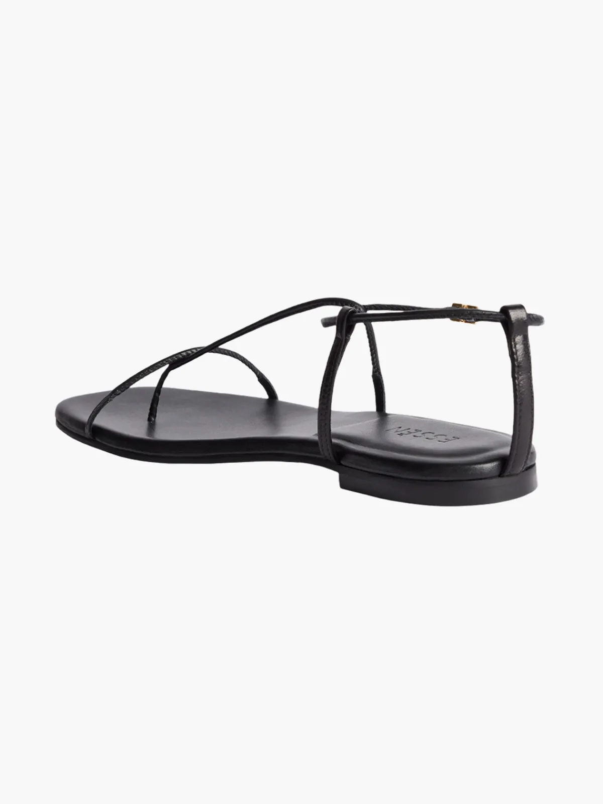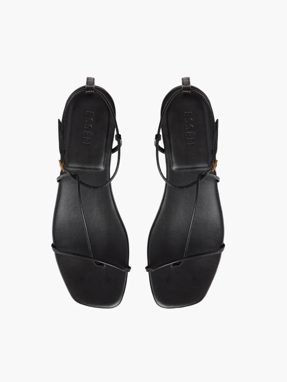 Our ESSEN TheEvening Sandal in Black features aminimalistsilhouette with barely-there slender straps and a subtle adjustable buckle closure at ankle. Finished with a flexible rubber outsole and a cushioned memory foam padding for added comfort. Handcrafted by artisans in Italy.