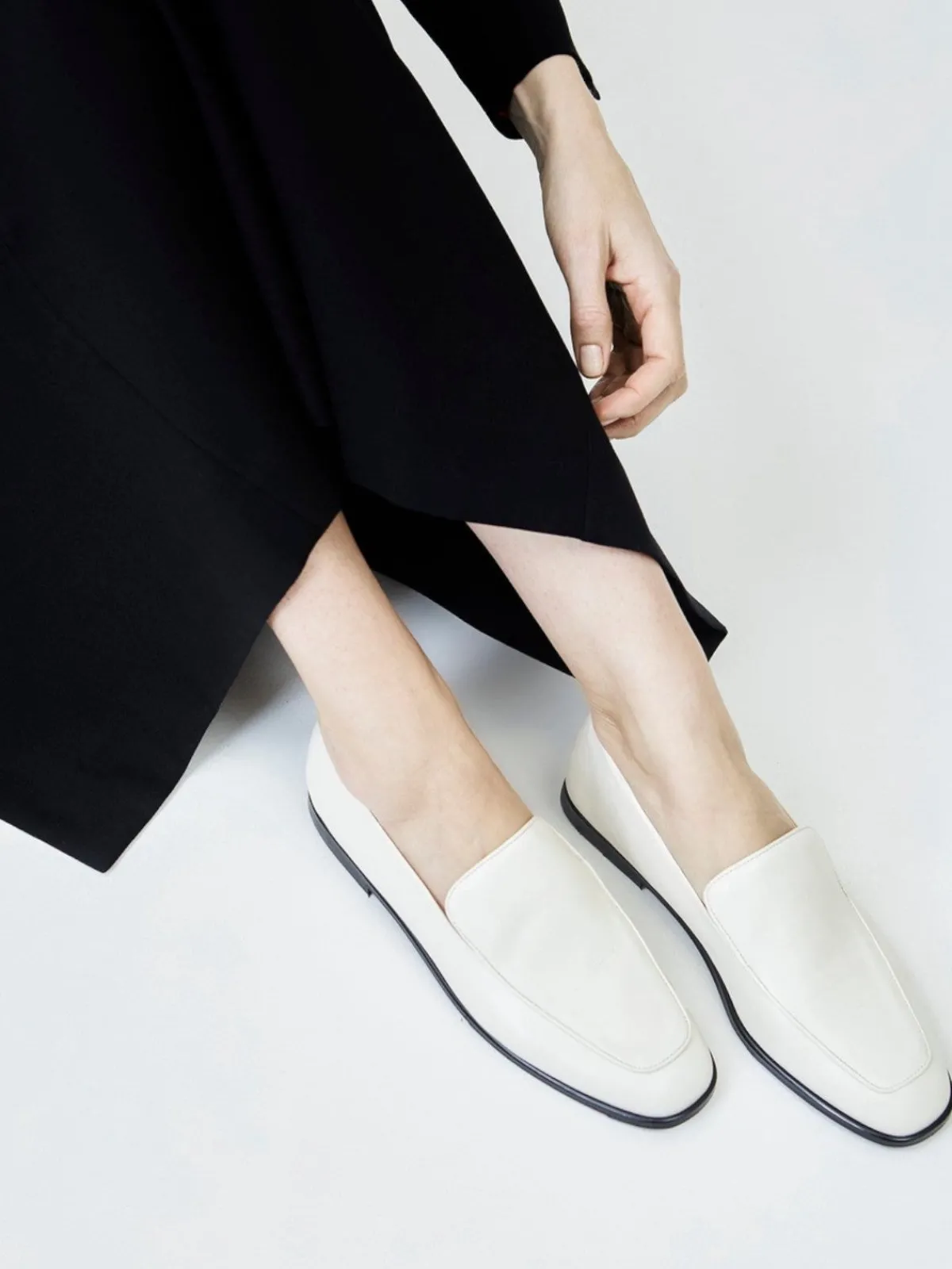 Our ESSEN The Modern Moccasin in Butter is a slip-on shoe with a timeless style. Featuring a subtle square toe, graceful lines, and a memory foam sole for added comfort. Handcrafted by artisans in Italy.