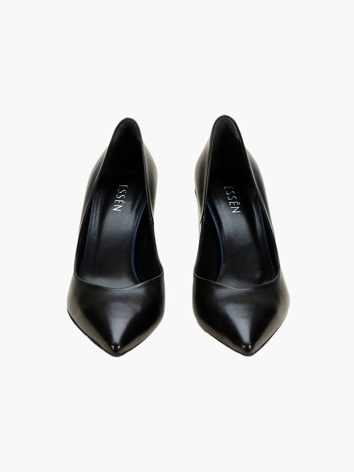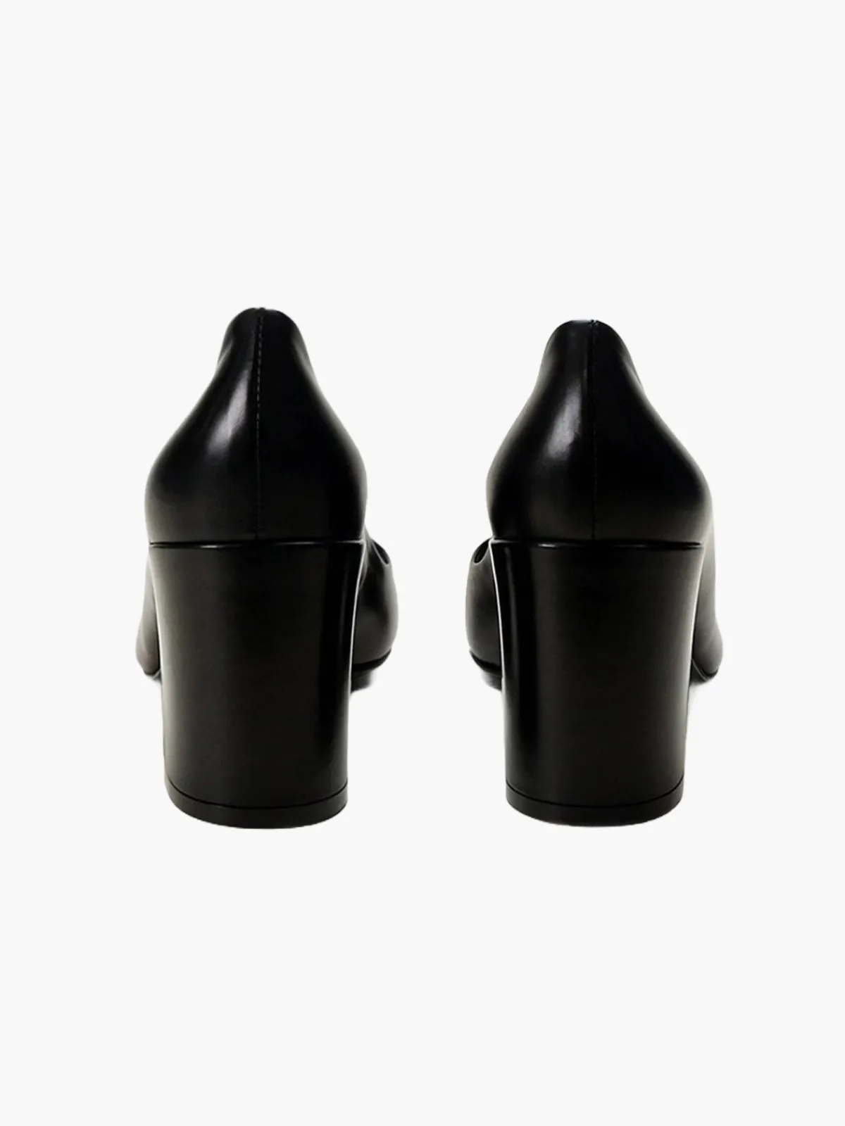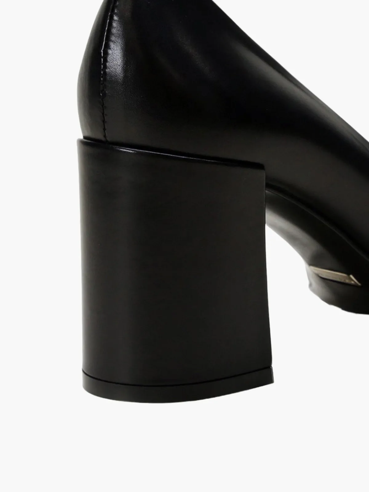 Our ESSEN The Perfect Pump in Black is timeless in a slip-on silhouette with pointy toes, thick block heels, and durable rubber outsoles. Handcrafted by artisans in Italy.