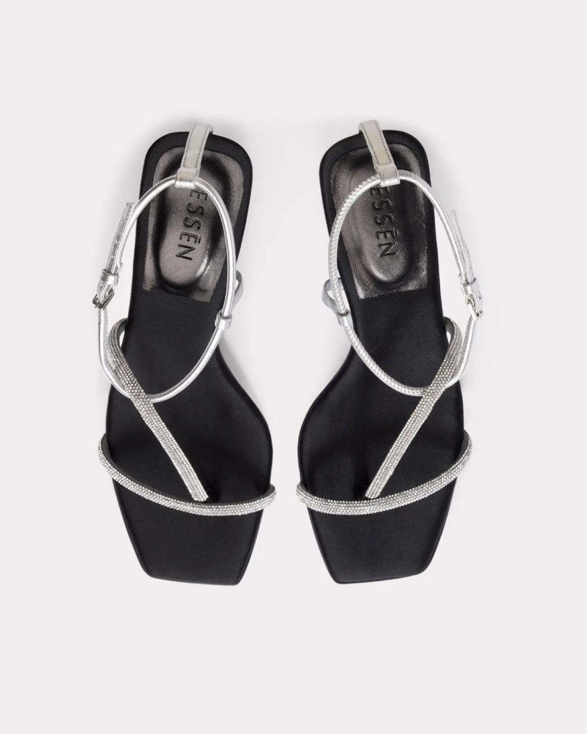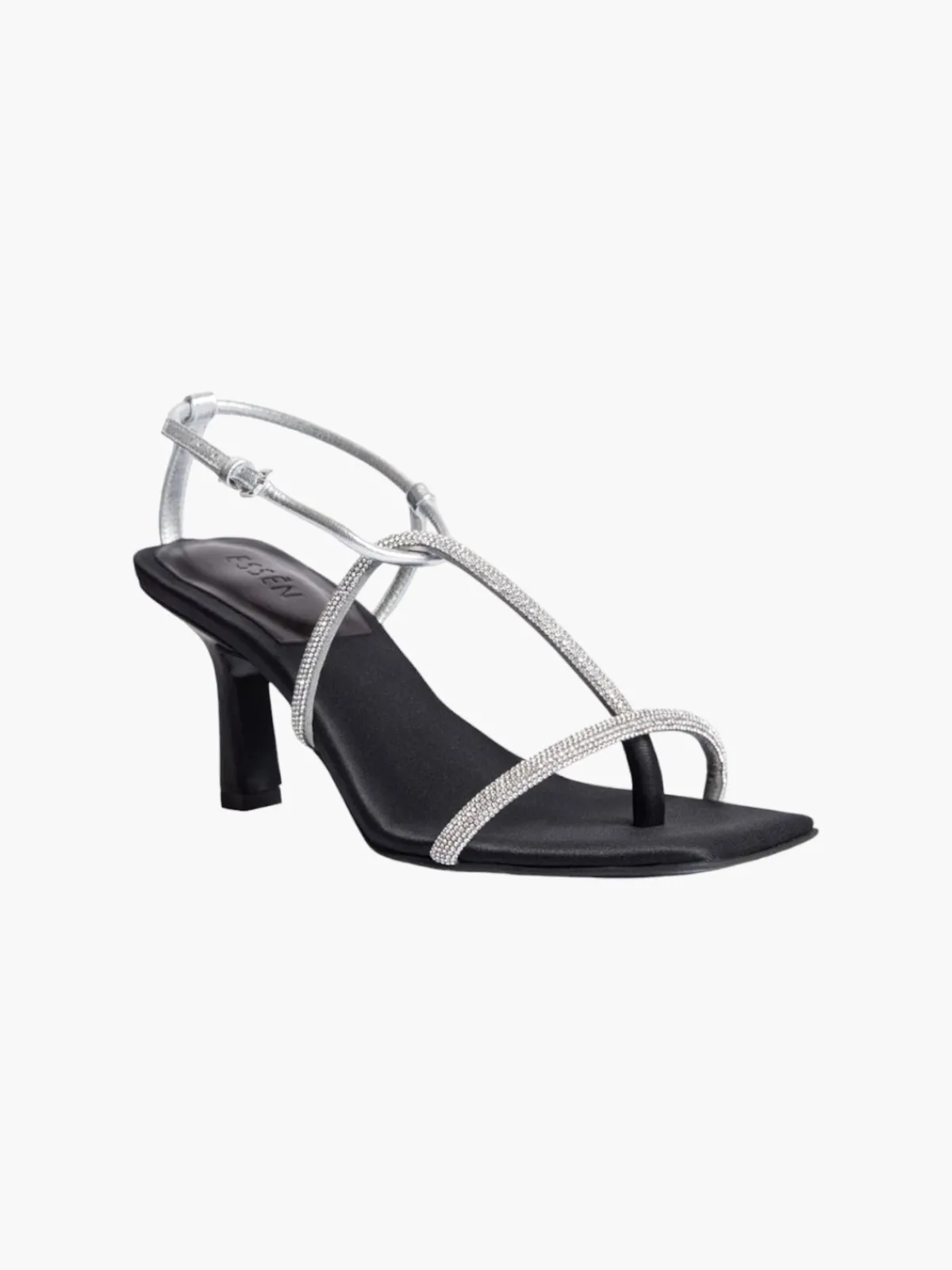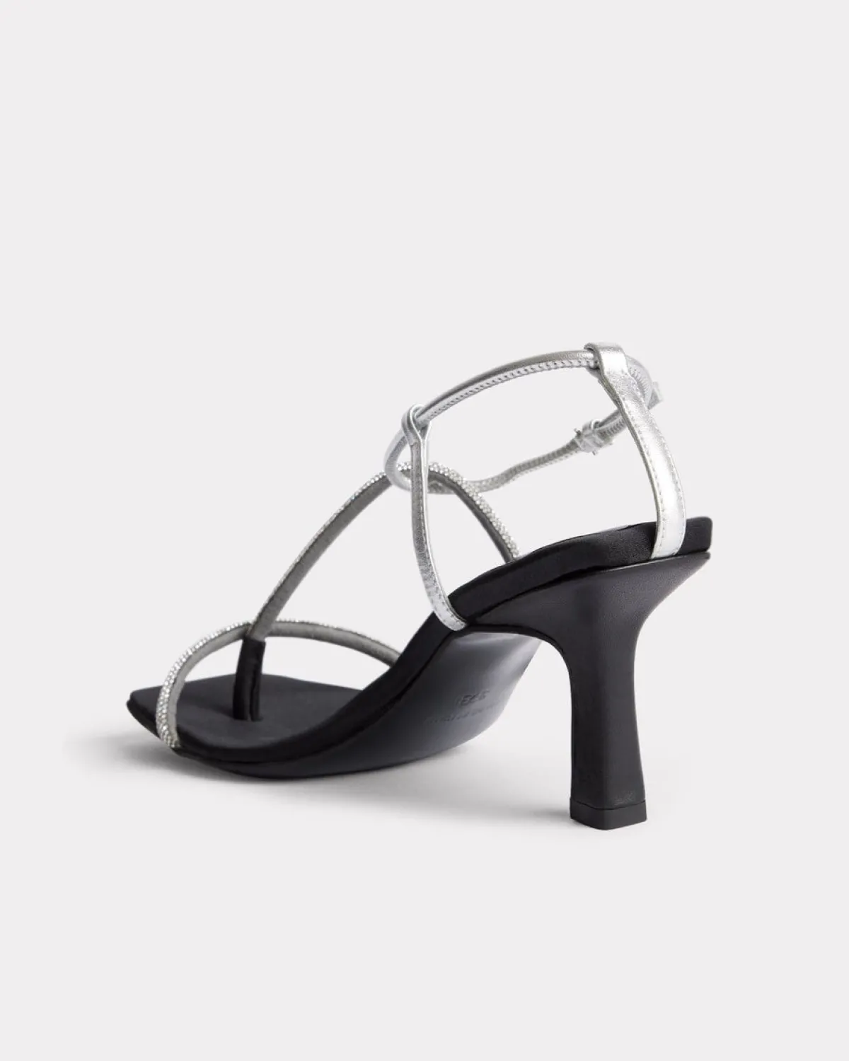 Our ESSEN The Strappy Sandal inCrystal features a slender heel, slender straps, and an ankle strap with an adjustable buckle closure. Finished with a flexible rubber outsole and a cushioned memory foam padding for added comfort. Handcrafted by artisans in Italy.