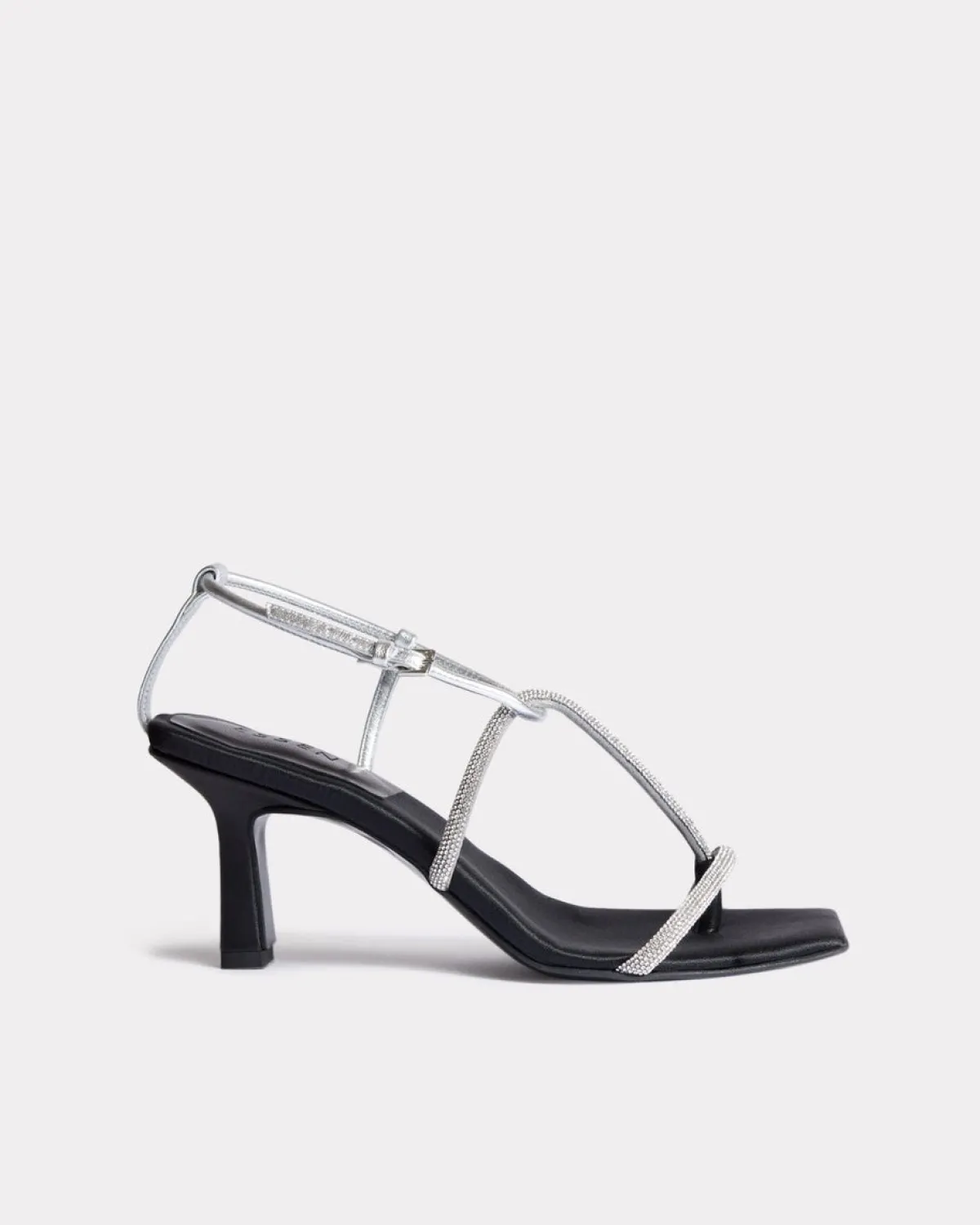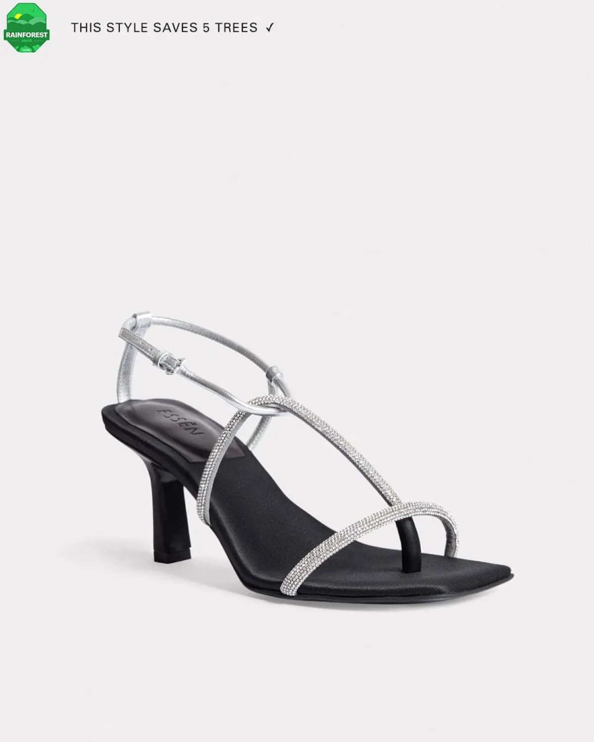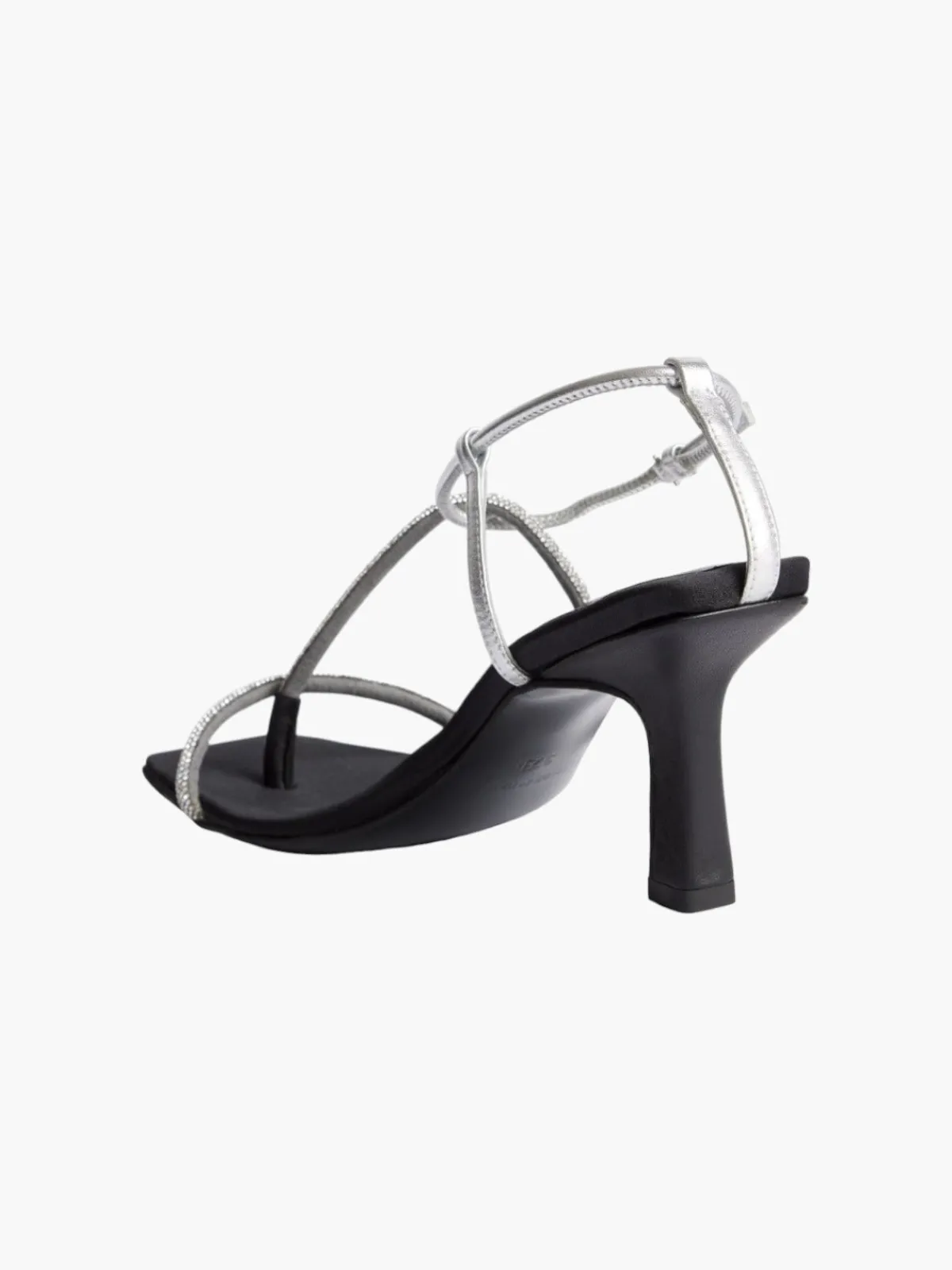 Our ESSEN The Strappy Sandal inCrystal features a slender heel, slender straps, and an ankle strap with an adjustable buckle closure. Finished with a flexible rubber outsole and a cushioned memory foam padding for added comfort. Handcrafted by artisans in Italy.