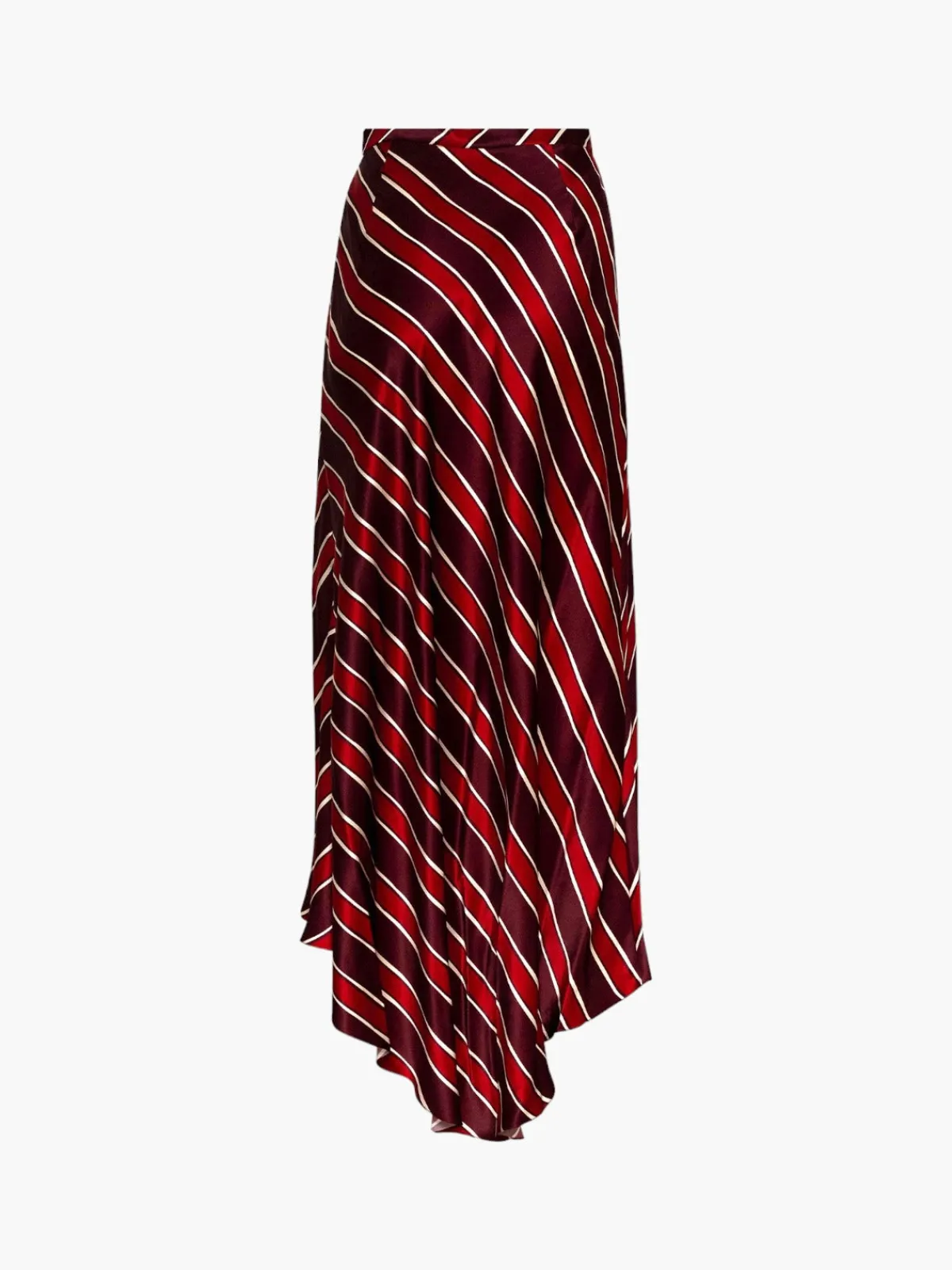 Our Estefania Acapulco Skirt inRed is a midi length skirt with a striking diagonal stripe pattern.Handcrafted in Colombia by female heads of households.