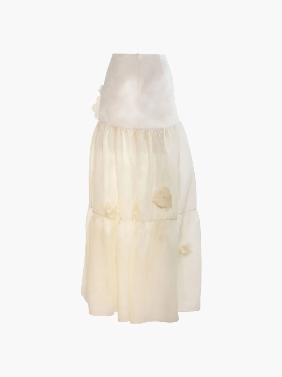Our Estefania Marigold Skirt inIvoryfeaturestiered detailing with flower accessories on the front and back. Handcrafted in Colombia by female heads of households.