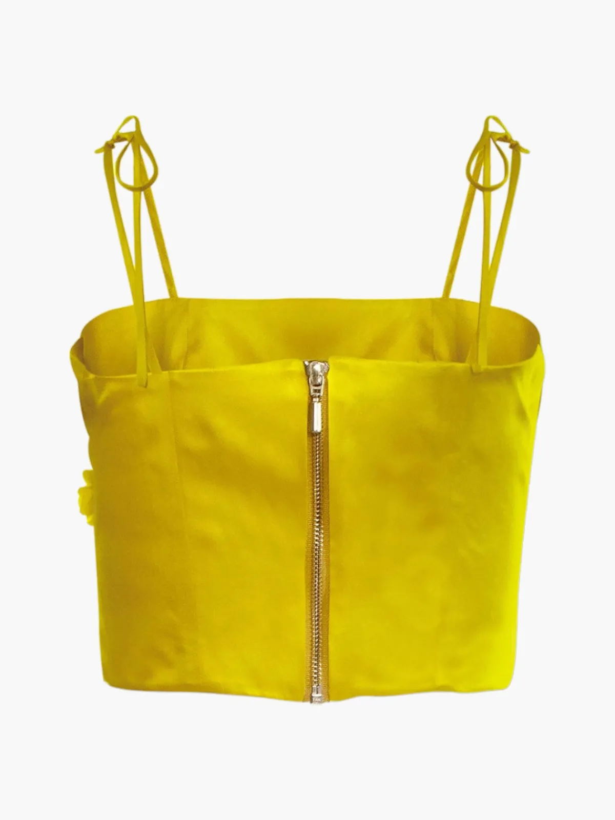 Our Estefania Marigold Top in Lemoncellofeaturessubtle bow details on the shoulders. Handcrafted in Colombia by female heads of households.