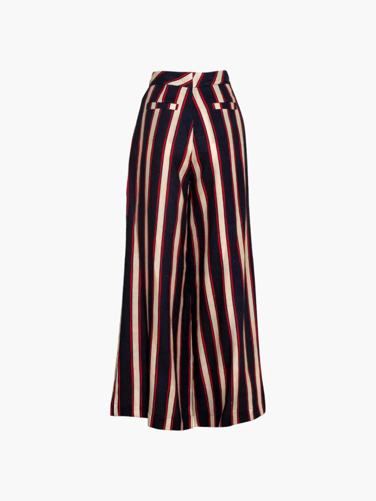 Our EstefaniaMarine Stripe LinenPant in Cavier Midnight has a relaxed and casual style with a straight cut.Handcrafted in Colombia by female heads of households.