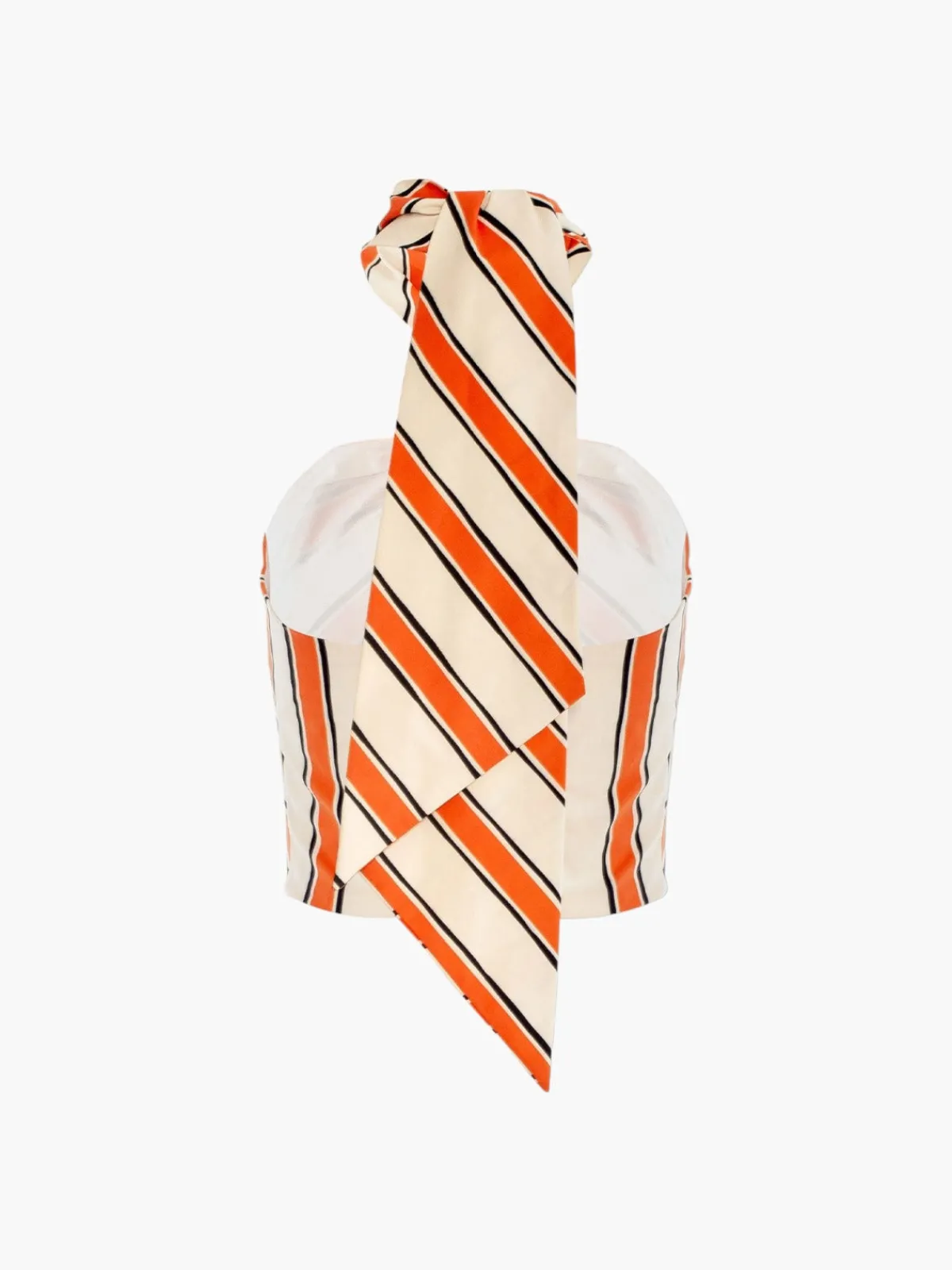 Our EstefaniaPalma de Coco Top in Orange/Sand is a versatile garment made with a vibrant stripe fabric. The top is a halter style that ties in the back.Handcrafted in Colombia by female heads of households.