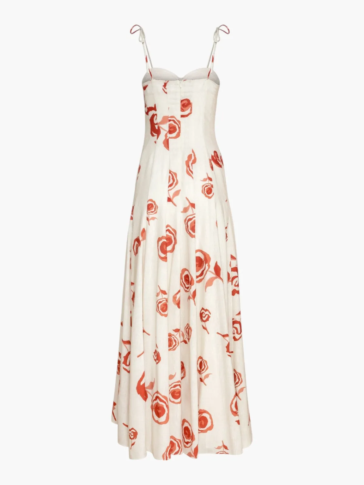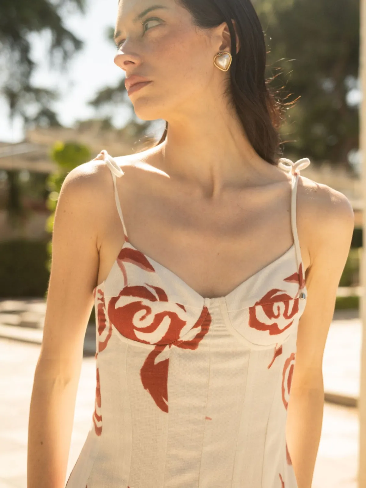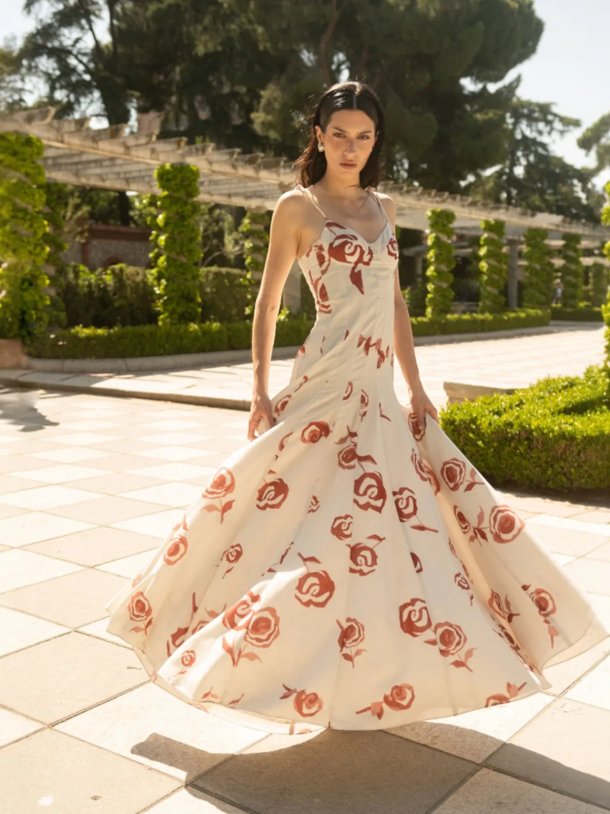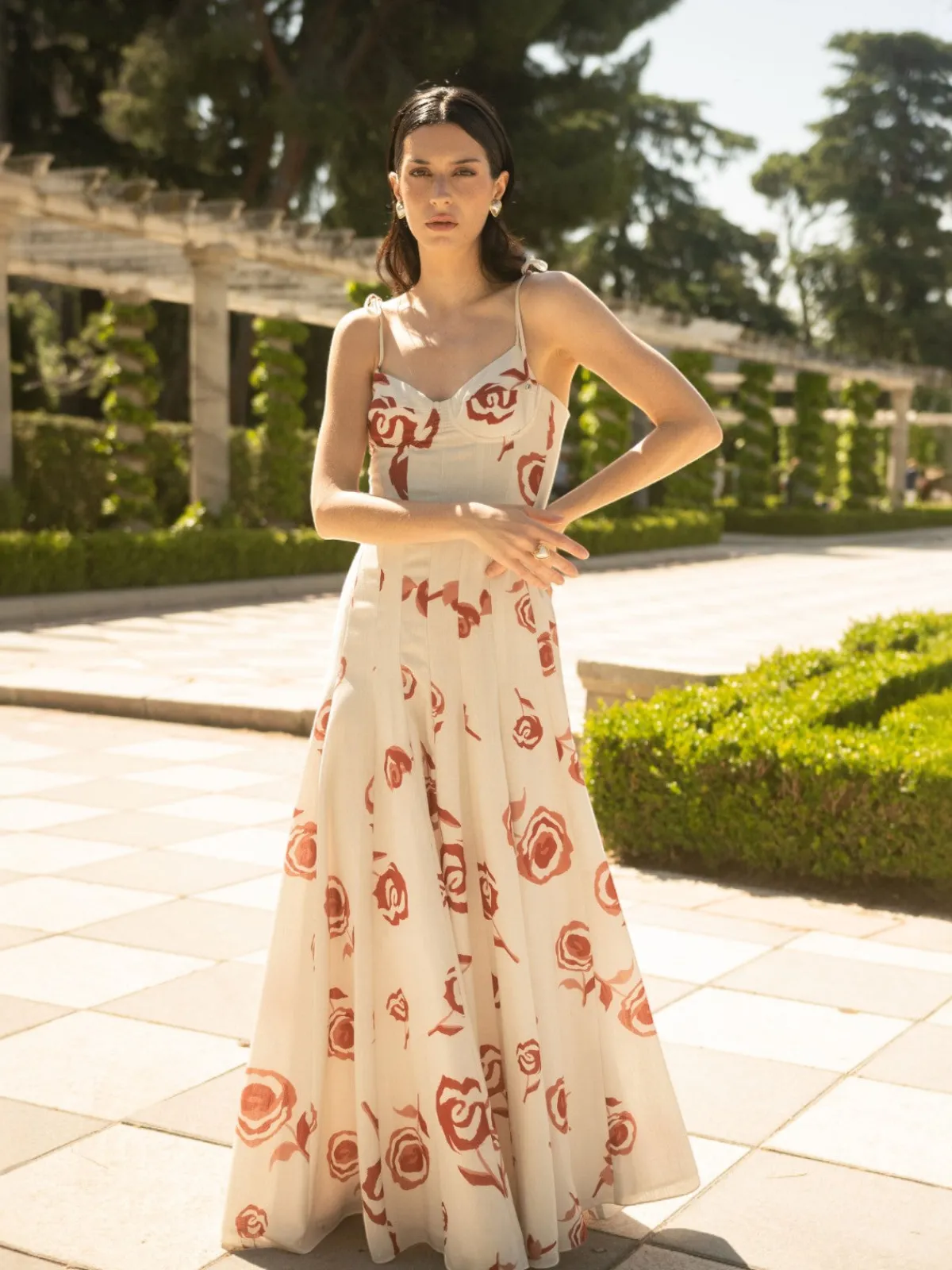 Our Estefania Rosetta Maxi Dress in Ivory/Red seamlessly blends contemporary design with a timeless, romantic femininity. Crafted from airy cotton, this enchanting dress is adorned with an exclusive rose print, reflecting the essence of our brand. Thoughtful bust darts and tailored cups enhance the silhouette, adding a sculpted, flattering shape to its graceful form. <span data-sheets-userformat='{"2":14845,"3":{"1":0,"3":1},"5":{"1":[{"1":2,"2":0,"5":{"1":2,"2":0}},{"1":0,"2":0,"3":3},{"1":1,"2":0,"4":1}]},"6":{"1":[{"1":2,"2":0,"5":{"1":2,"2":0}},{"1":0,"2":0,"3":3},{"1":1,"2":0,"4":1}]},"7":{"1":[{"1":2,"2":0,"5":{"1":2,"2":0}},{"1":0,"2":0,"3":3},{"1":1,"2":0,"4":1}]},"8":{"1":[{"1":2,"2":0,"5":{"1":2,"2":0}},{"1":0,"2":0,"3":3},{"1":1,"2":0,"4":1}]},"9":0,"10":1,"11":4,"14":{"1":3,"3":1},"15":"Arial","16":12}' data-sheets-value='{"1":2,"2":"Inpired in the prodigious extravagances of the last maharajas, the El Carmen Sequin Skirt features dazzling patterned sequins combined with an impecable fit. Pair with the Delirio Top skirt to create the ultimate evening look.