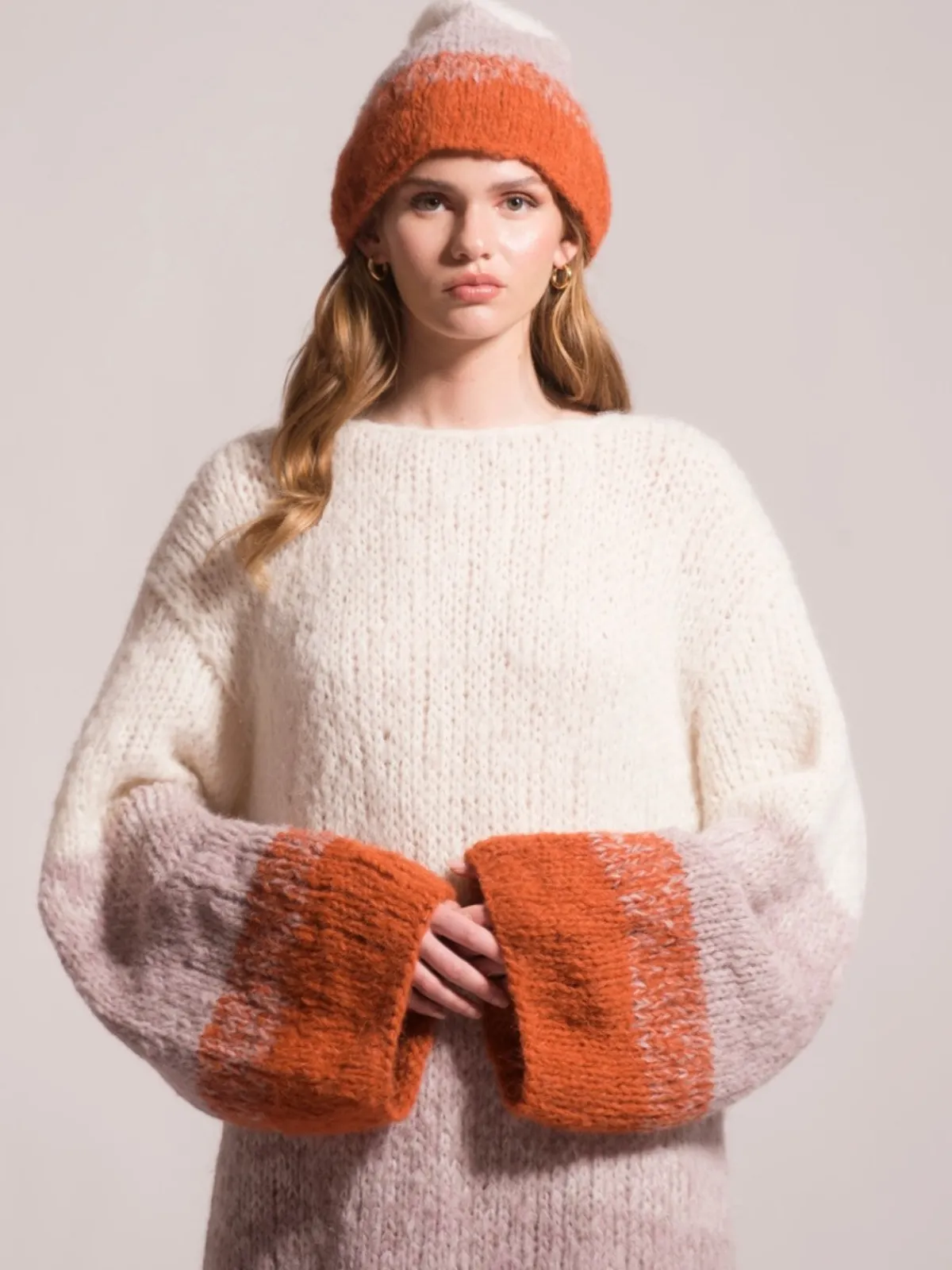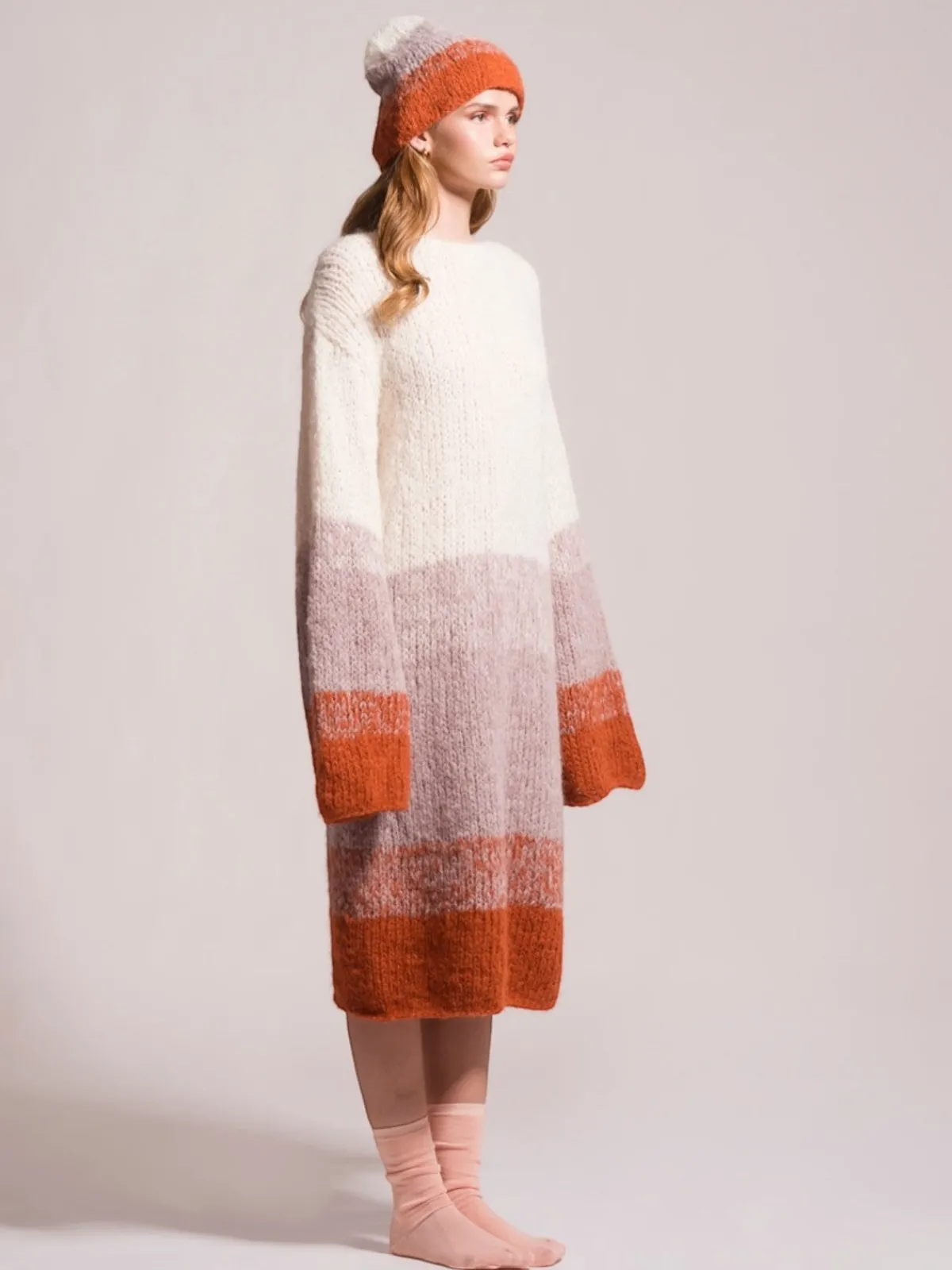 Our First Born Knits Lucette Dress is an effortlessly chic knit midi, designed with a relaxed, oversized fit. Adorned with a vibrant multi-color stripe pattern and it falls just below the knee. This piece has been handcrafted in Peru by the same female head-of-household from start to finish – something rare to find in today’s fast fashion world.