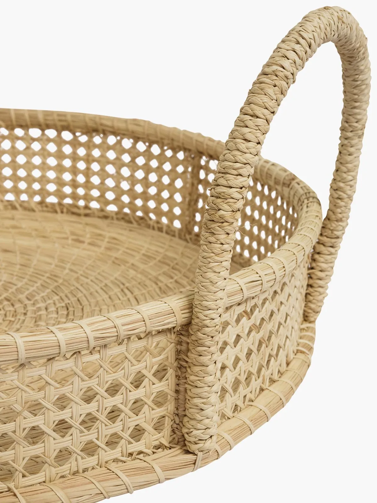 Our Francesca Miranda Bandeja Mimbre Clasico is the perfect breakfast tray in a round shape with side handles. Handcrafted by artisans in Colombia.